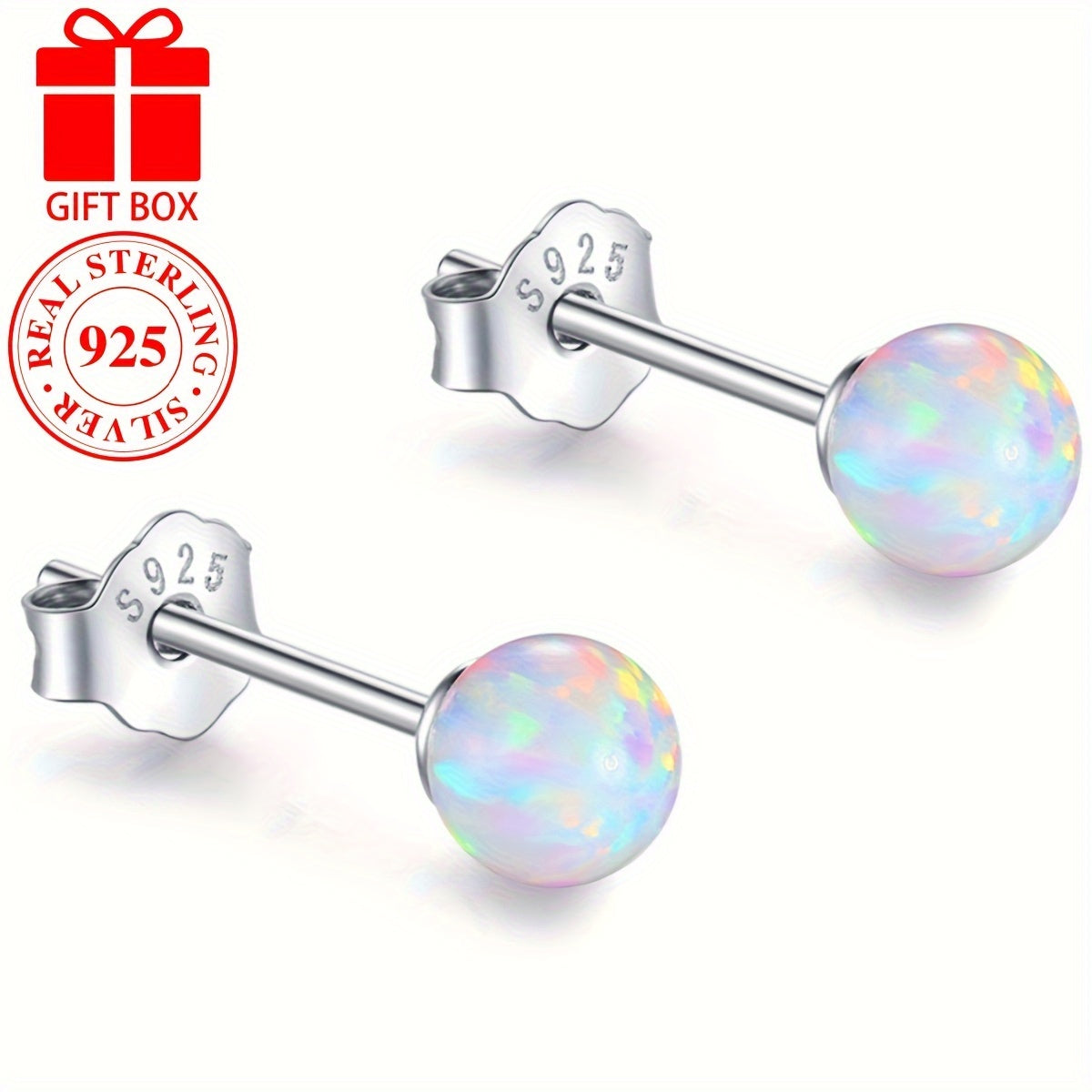 925 Silver Opal Sphere Stud Earrings for Daily & Special Occasions