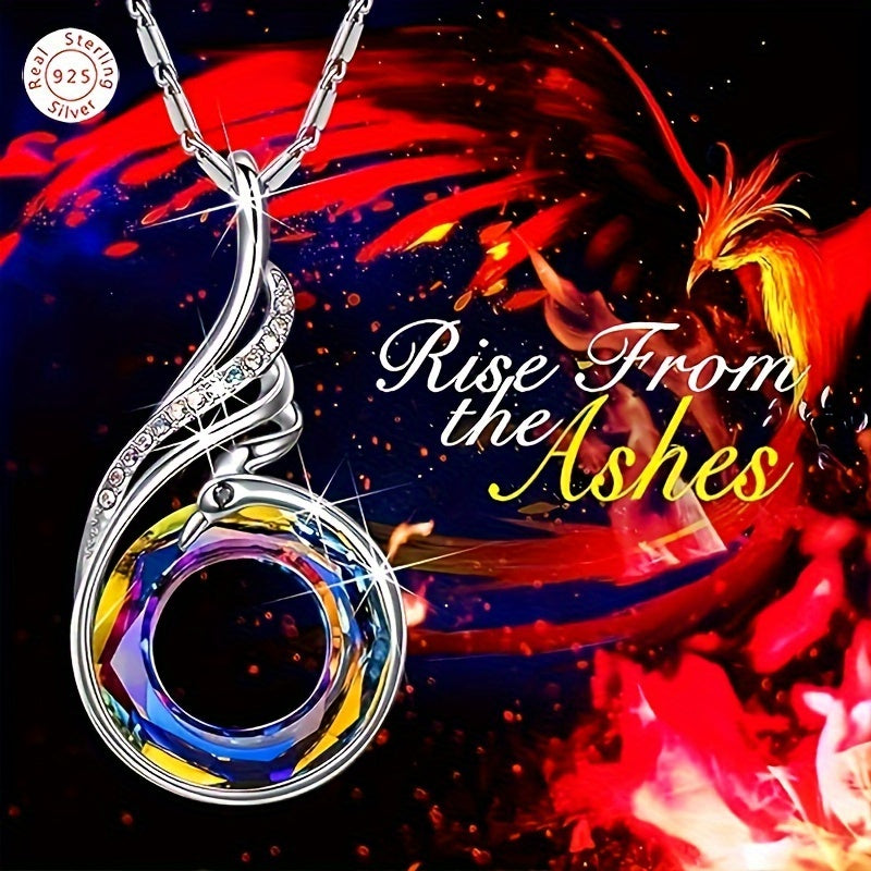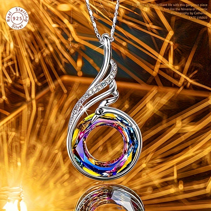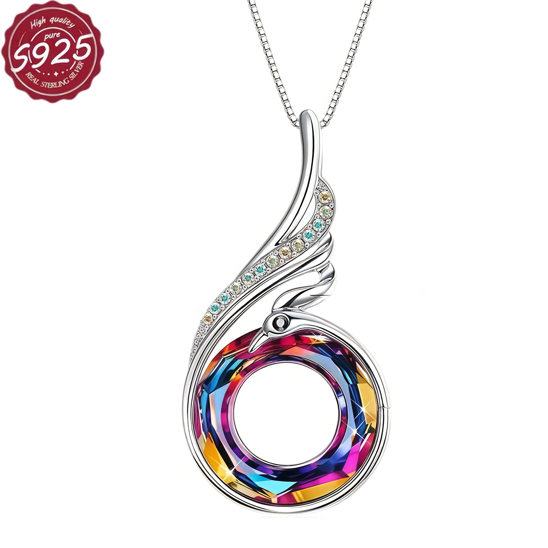 Elegant 925 sterling silver necklace featuring a stunning Phoenix design adorned with Austrian artificial crystals. The perfect gift for Valentine's, Mother's Day, or birthdays.