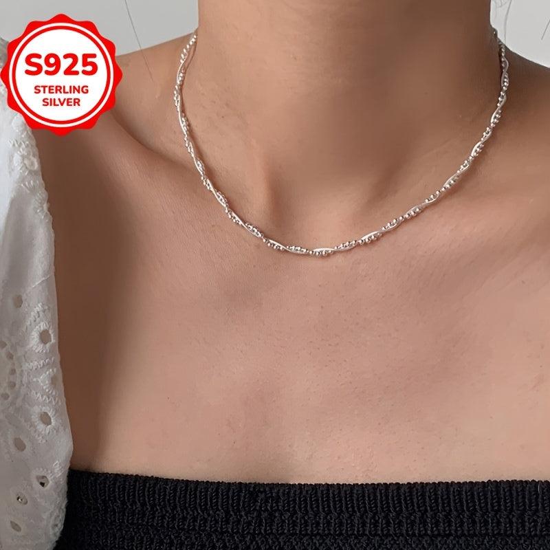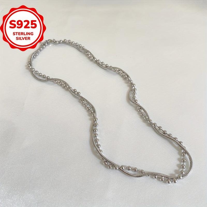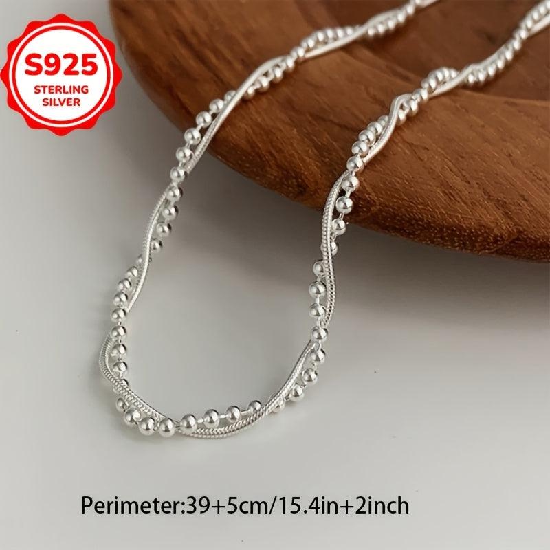 This 925 silver snake chain necklace features a double layer design with round bead accents. It is a versatile accessory that can be worn all season long, making it a great gift for any occasion.