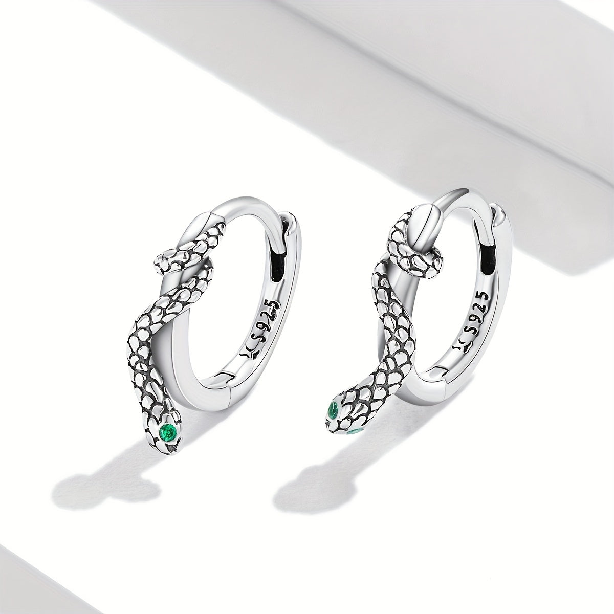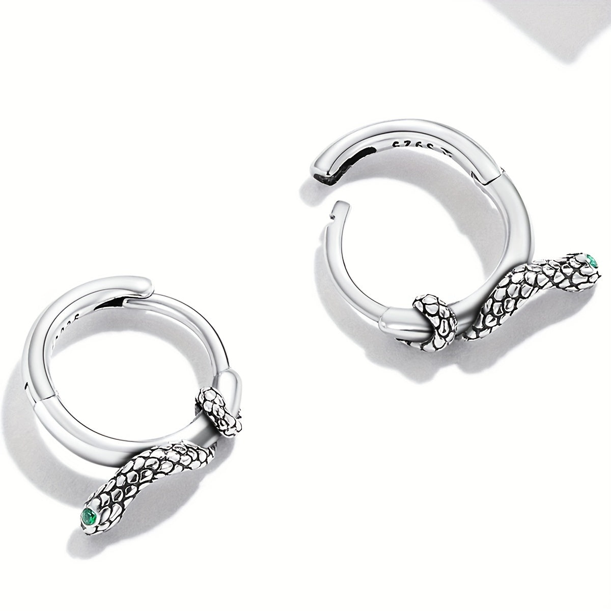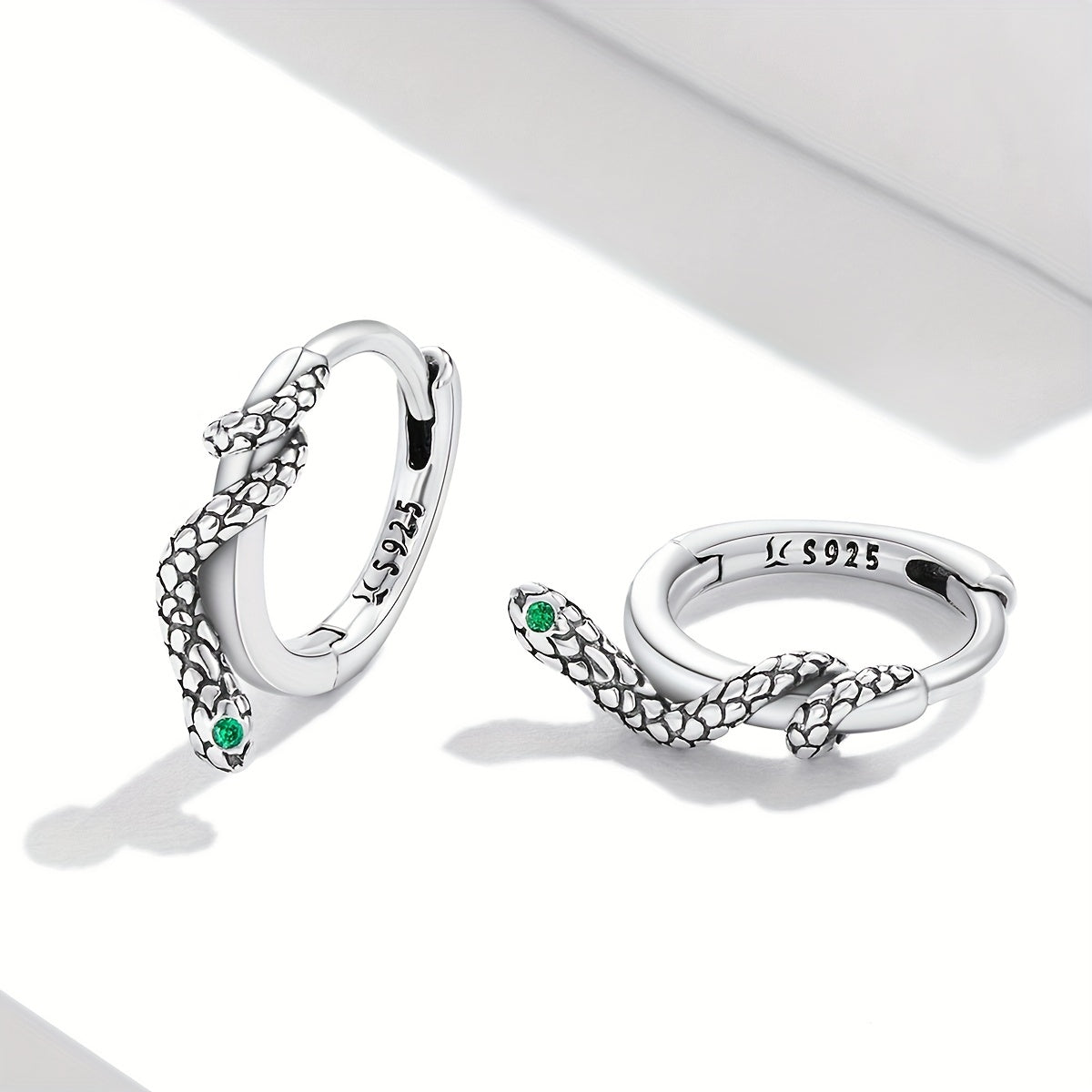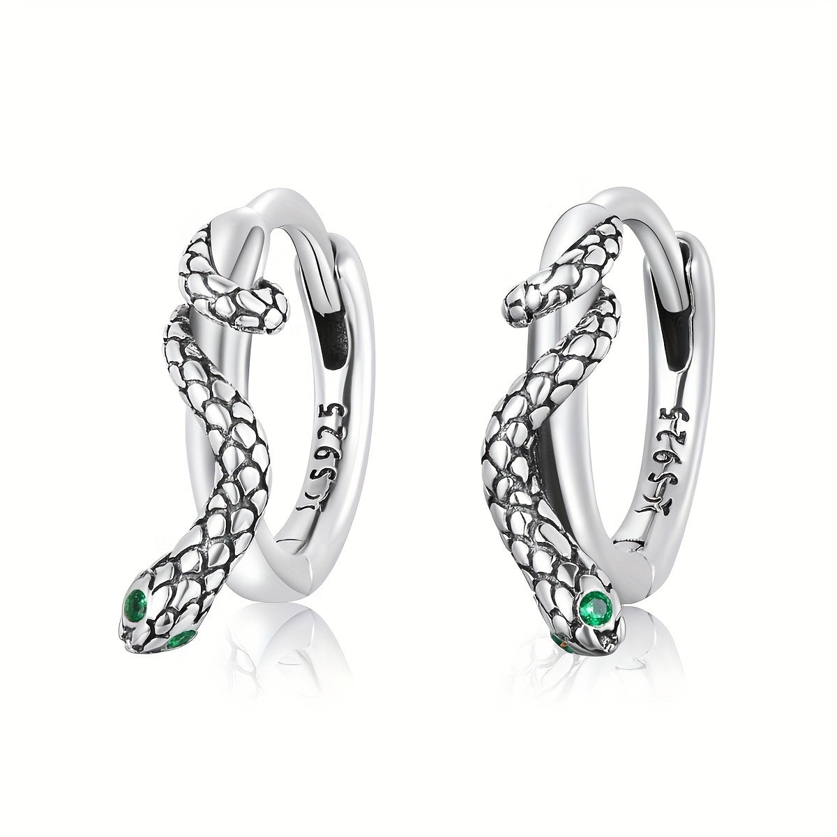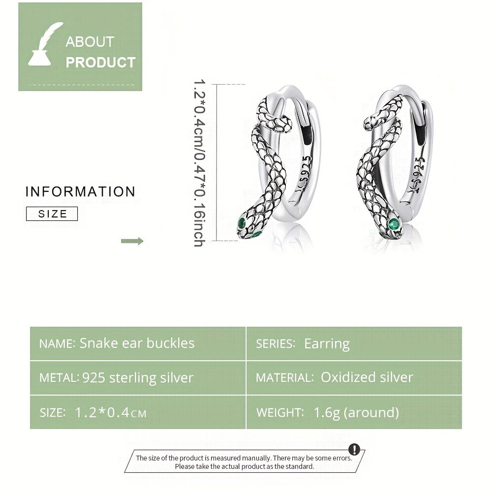 Add a touch of elegance with these 925 sterling silver snake ear buckle hoop earrings featuring green zirconium gemstones. It makes a perfect gift for any occasion.