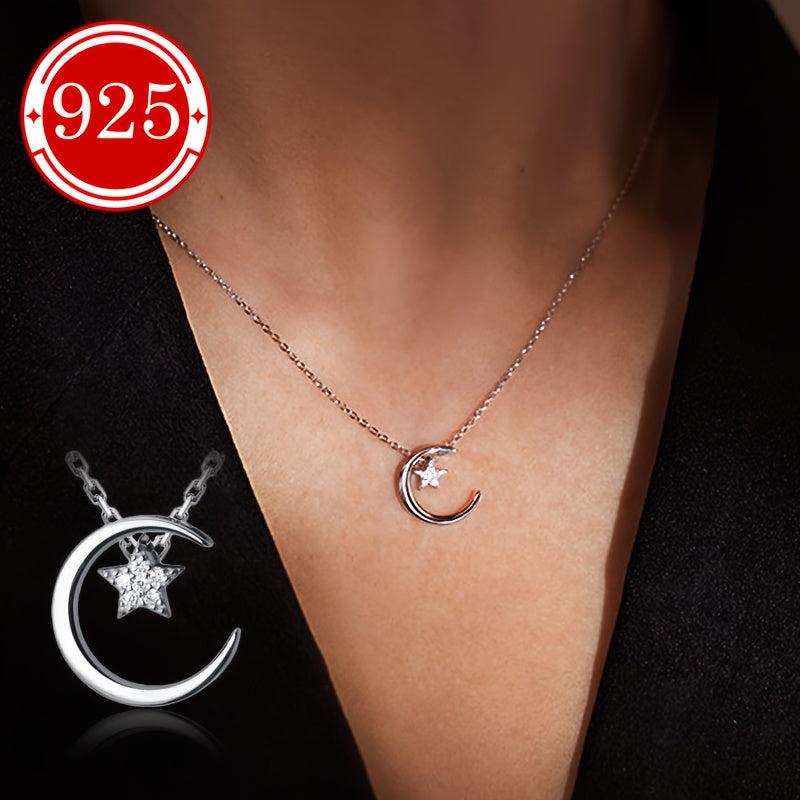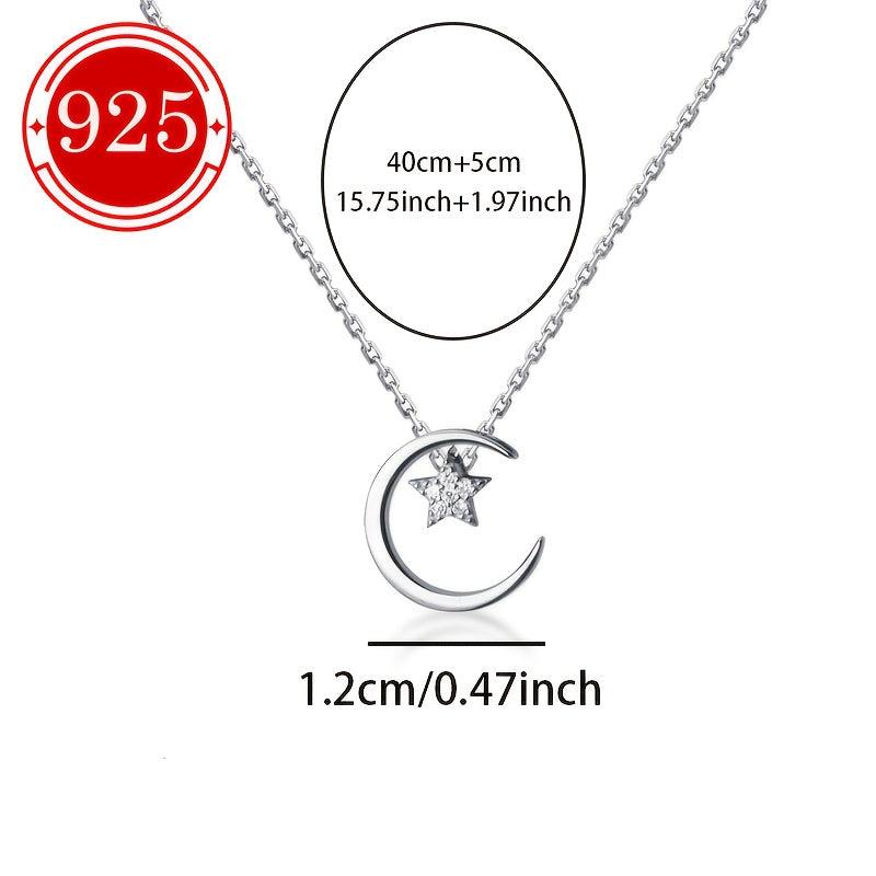 This women's necklace features a high-quality star and moon pendant, perfect for any season. Made of 925 silver, it is hypoallergenic and suitable for sensitive skin.