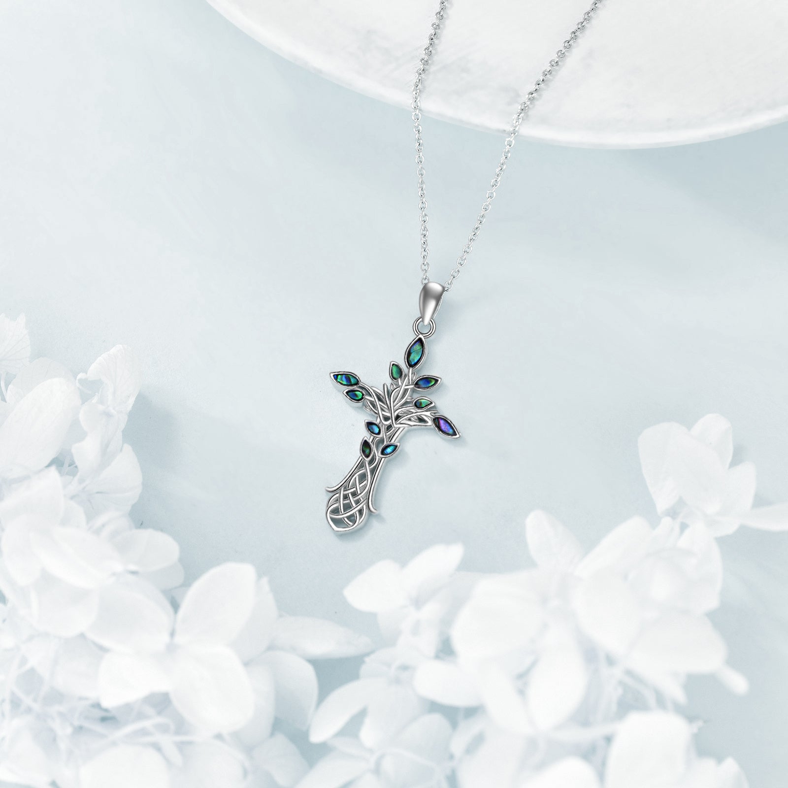 Beautiful sterling silver necklace featuring an abalone shell Tree of Life pendant, a symbol of family and connection. A stunning piece of jewelry for women.