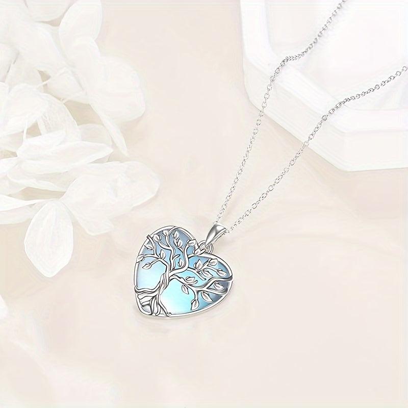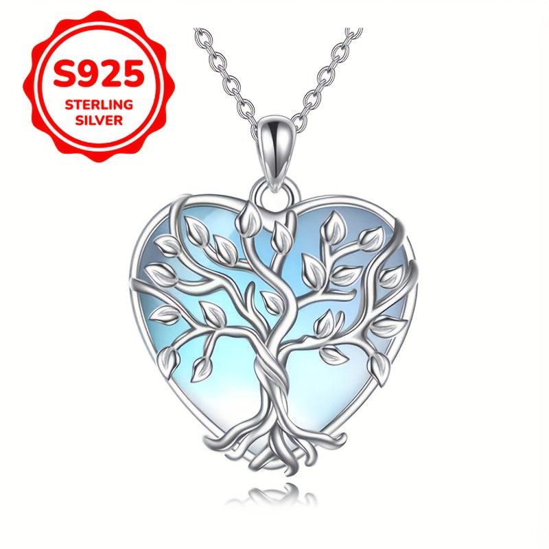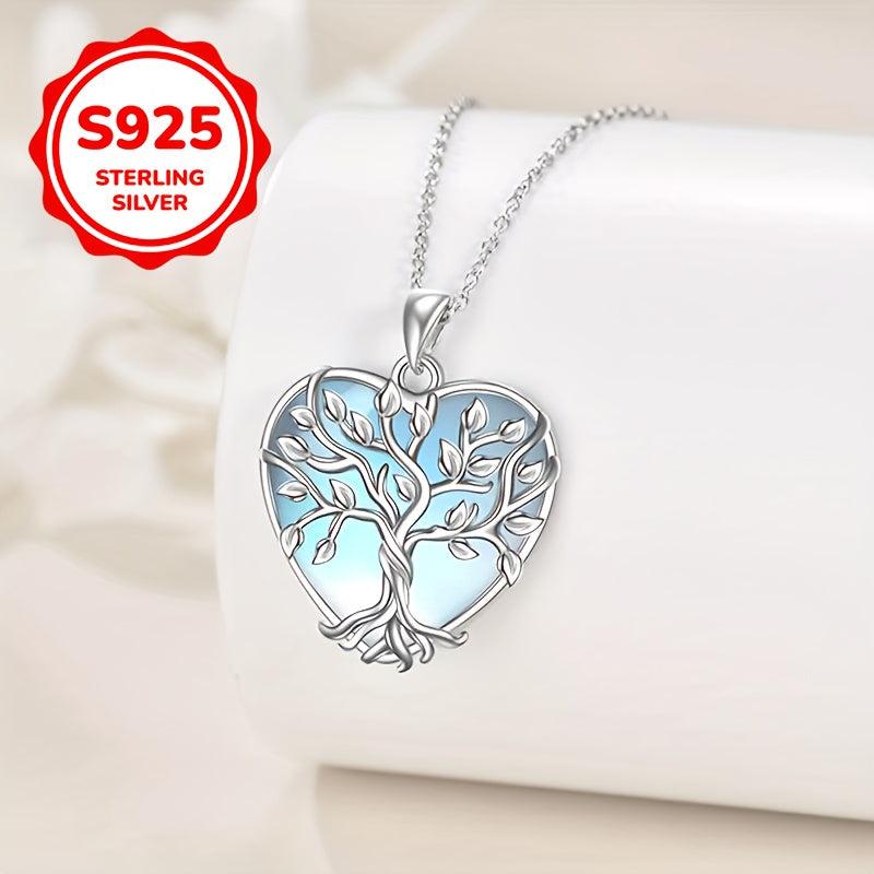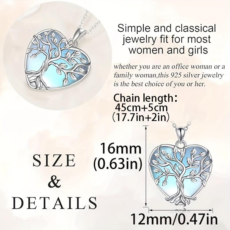 This stunning pendant necklace features a Tree of Life design with a heart-shaped moonstone, all crafted in 925 sterling silver. A perfect gift for women, this hypoallergenic jewelry suits all seasons.