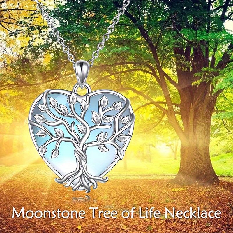 925 Silver Tree of Life Pendant Necklace with Moonstone Heart & Minimalist Style