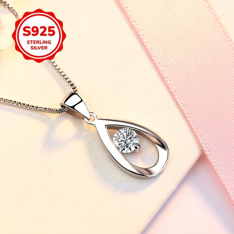 This 925 silver necklace features a water drop pendant, perfect for daily wear. It is hypoallergenic and suitable for all seasons. A high-end piece that adds a touch of elegance.