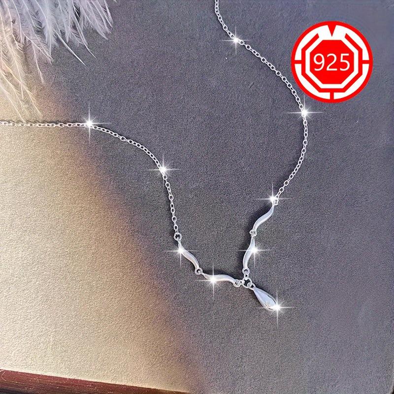 This necklace features a beautiful water drop pendant on a wave chain. It is made of 925 silver, perfect for those with sensitive skin. Ideal as a gift for couples or friends.