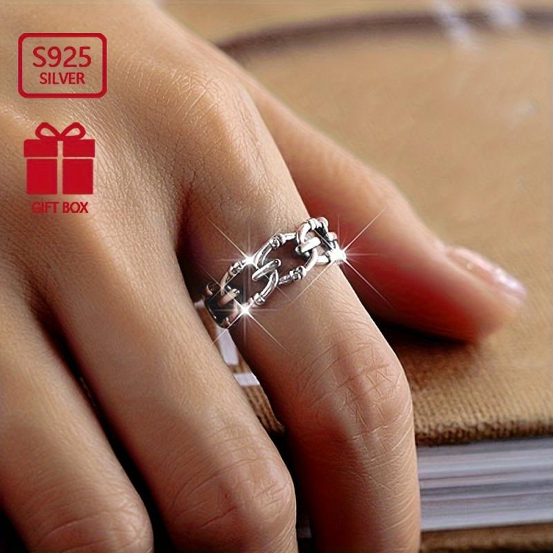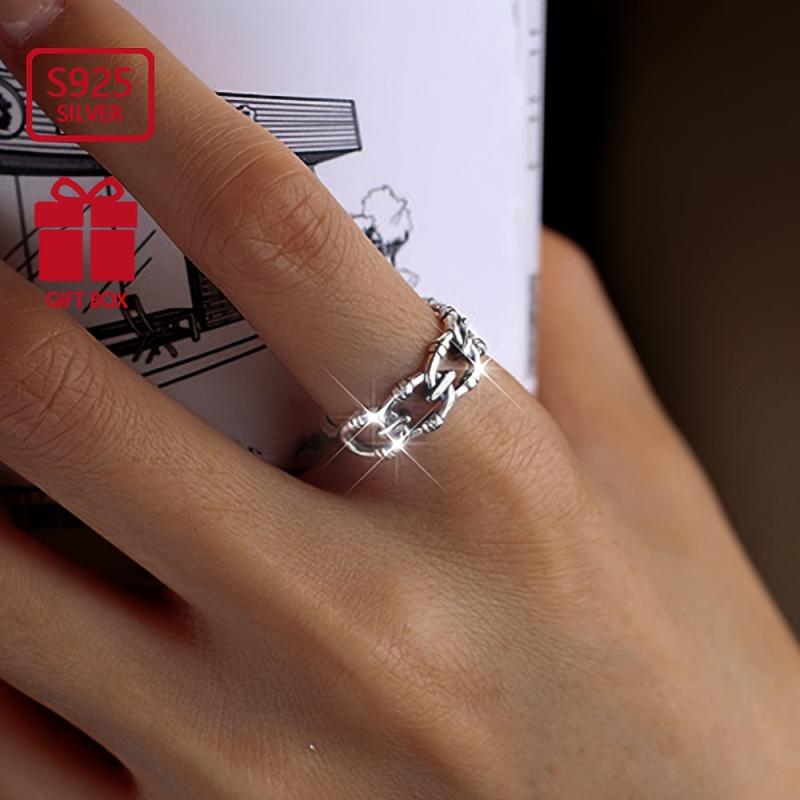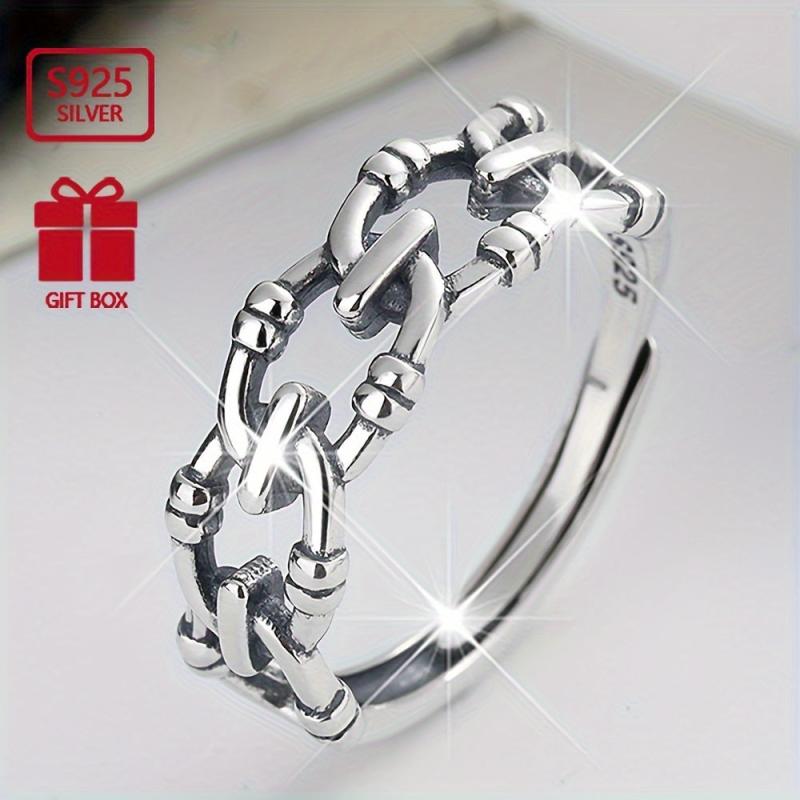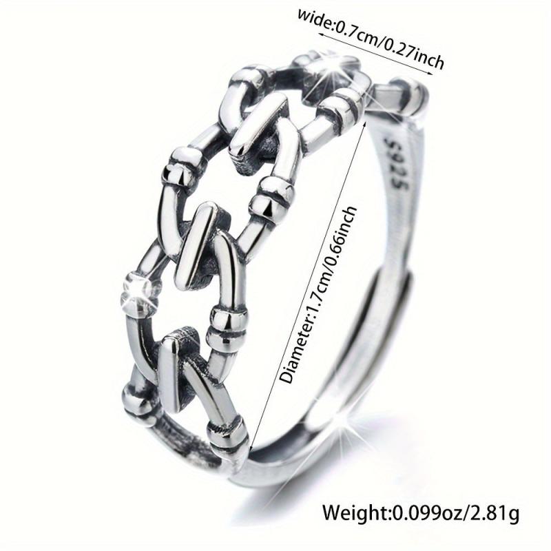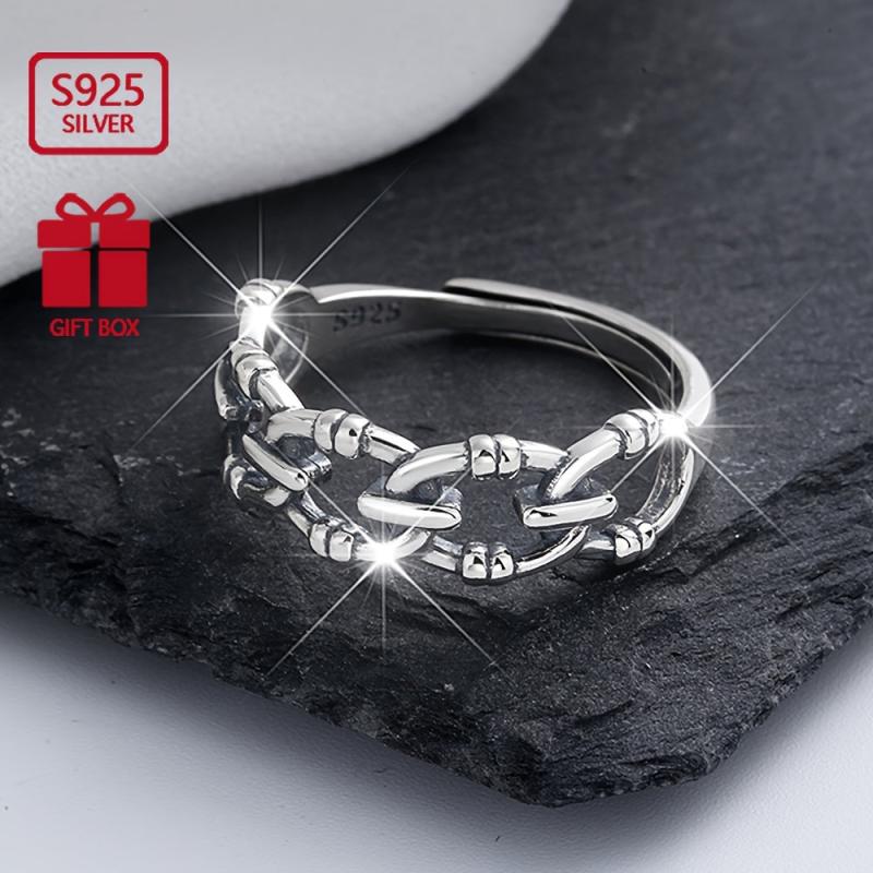 Add a touch of edgy elegance to your outfit with this 925 silver open ring. The intricate weave design gives off a punk vibe, perfect for party activities.