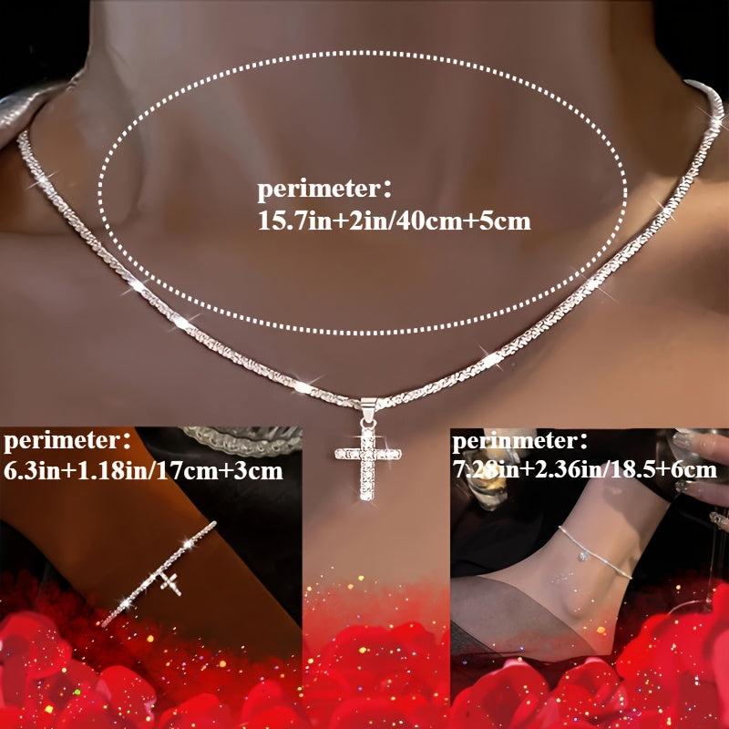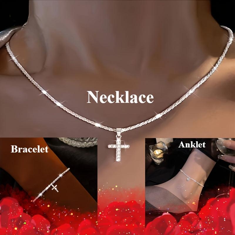 Elegant 3-piece jewelry set crafted from pure 925 sterling silver, adorned with sparkling zirconia stones. Versatile and suitable for all seasons, perfect for daily wear.