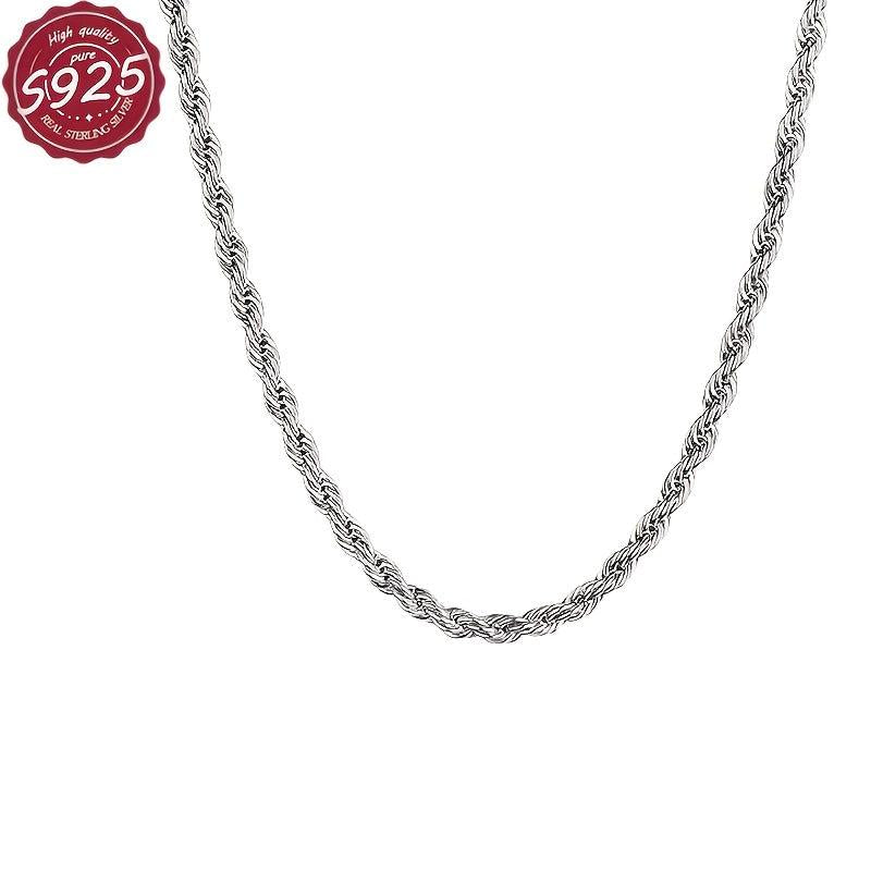 Elegant and durable rope chain necklace with stylish Italian woven design. Made of solid 925 sterling silver, this necklace is the perfect gift for any occasion.