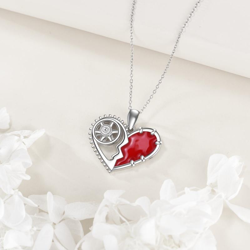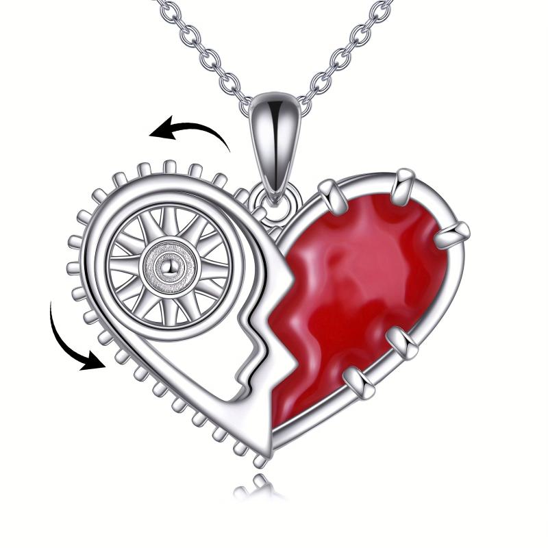 925 Sterling Silver Broken Heart Fidget Necklace Rotatable Pendant