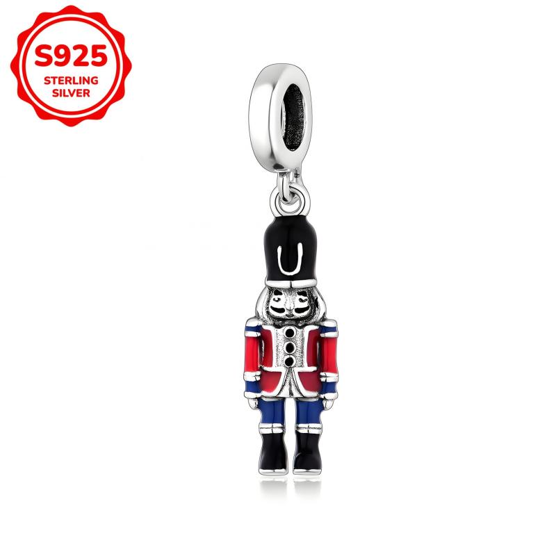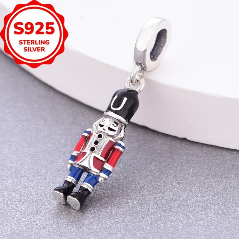 925 Sterling Silver Christmas Soldier Pendant Charm for DIY Jewelry Making