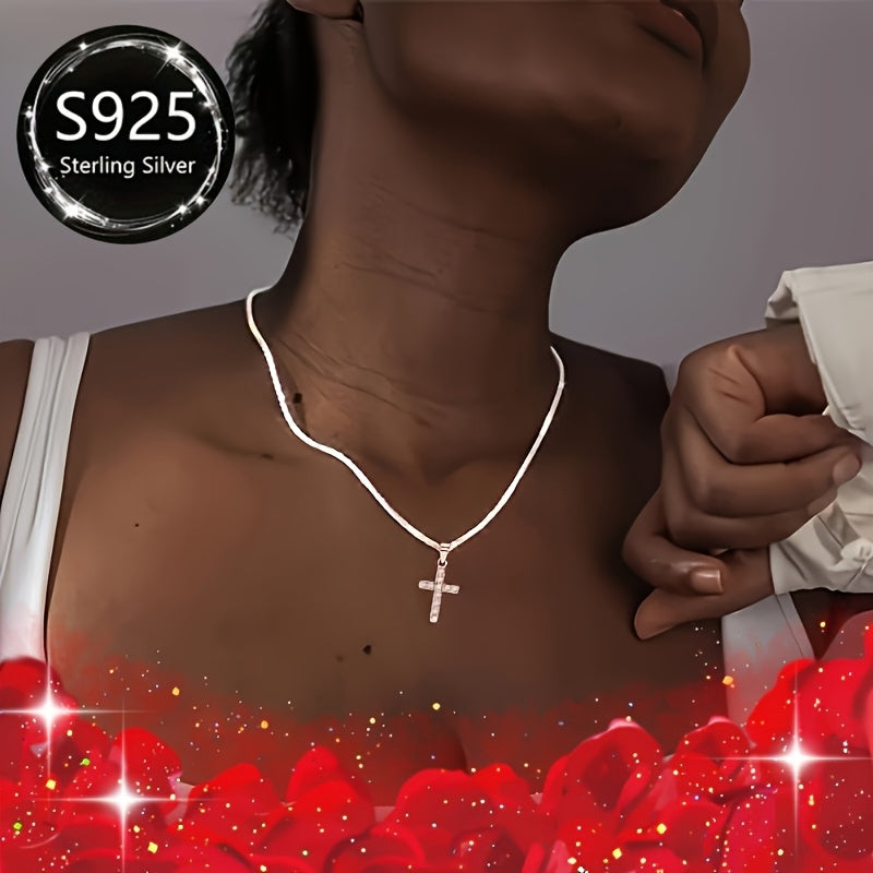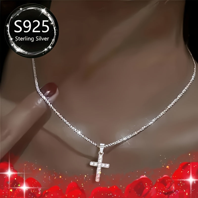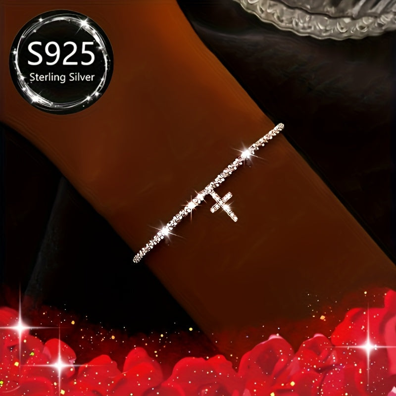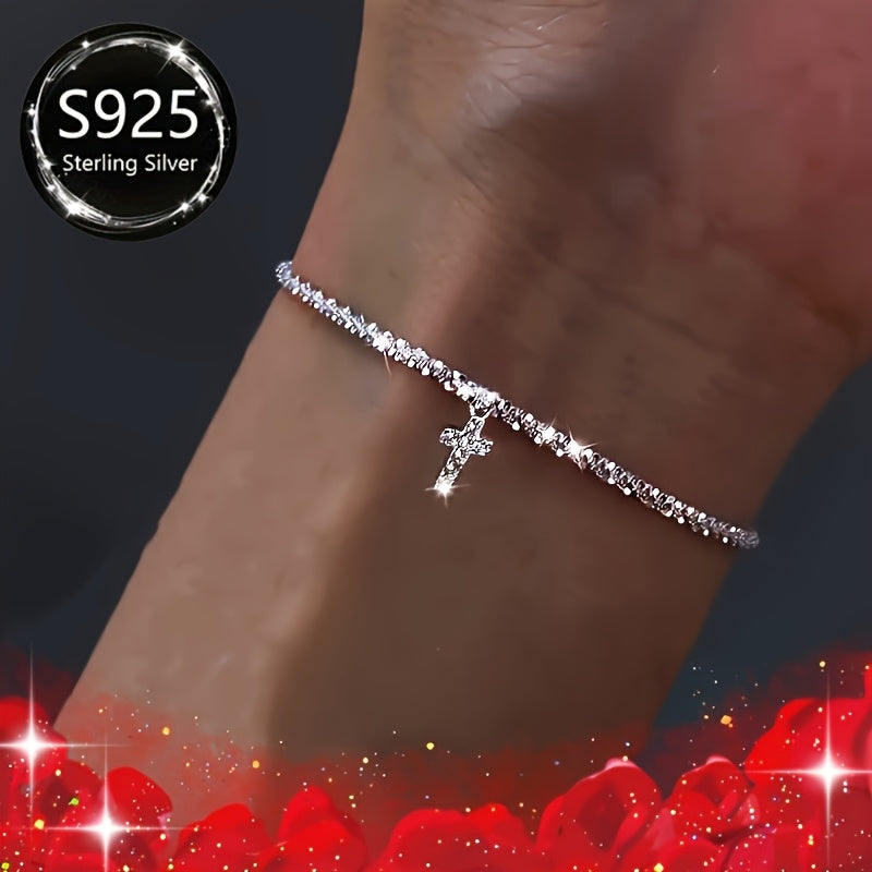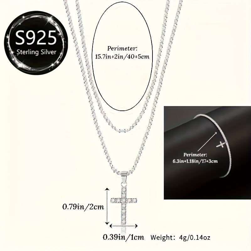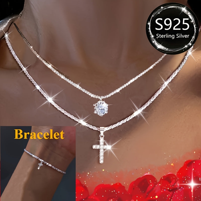 This exquisite set includes a cross necklace and a bracelet both made from 925 sterling silver adorned with sparkling synthetic zirconia stones. The glittering coconut snowflake chain adds an elegant touch to the set.