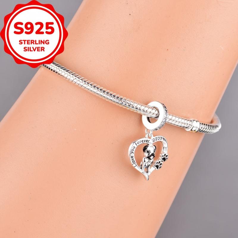 Add a touch of love to your DIY jewelry with this charming dog paw heart pendant. Made of 925 sterling silver and featuring synthetic zirconia, it's perfect for bracelets or necklaces. Ideal as a Christmas gift!