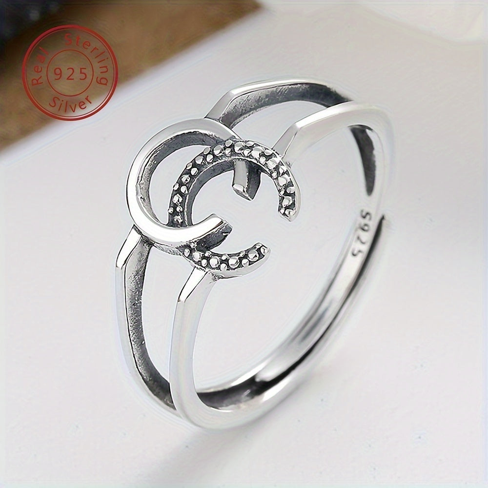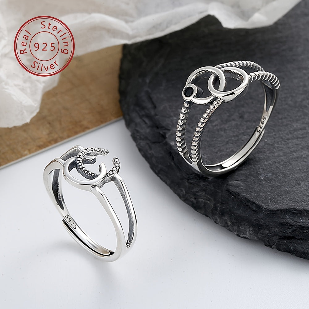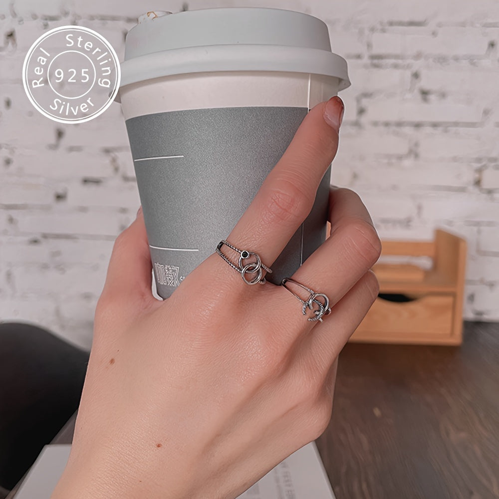 This beautiful double ring is made of 925 sterling silver and features an open design. It is adjustable to fit different finger sizes and can be worn as a stylish jewelry decoration for daily wear.