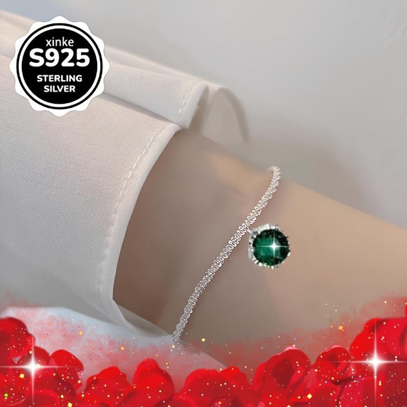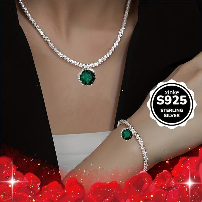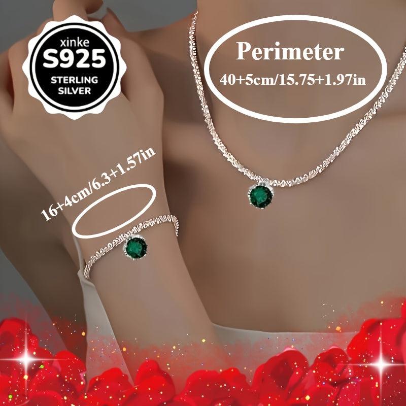 This stylish jewelry set is perfect for daily wear, parties, gatherings, dates, and beach outings. The set includes a pendant necklace and a bracelet, both adorned with green zirconia for a fashionable look.