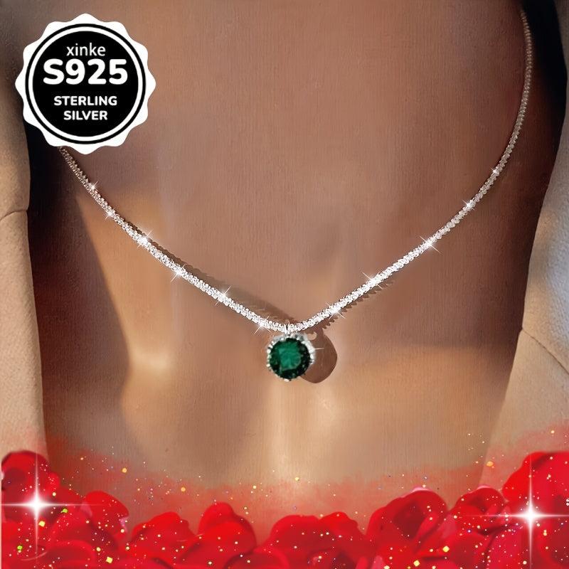 925 Sterling Silver Green Zirconia Necklace & Bracelet Set
