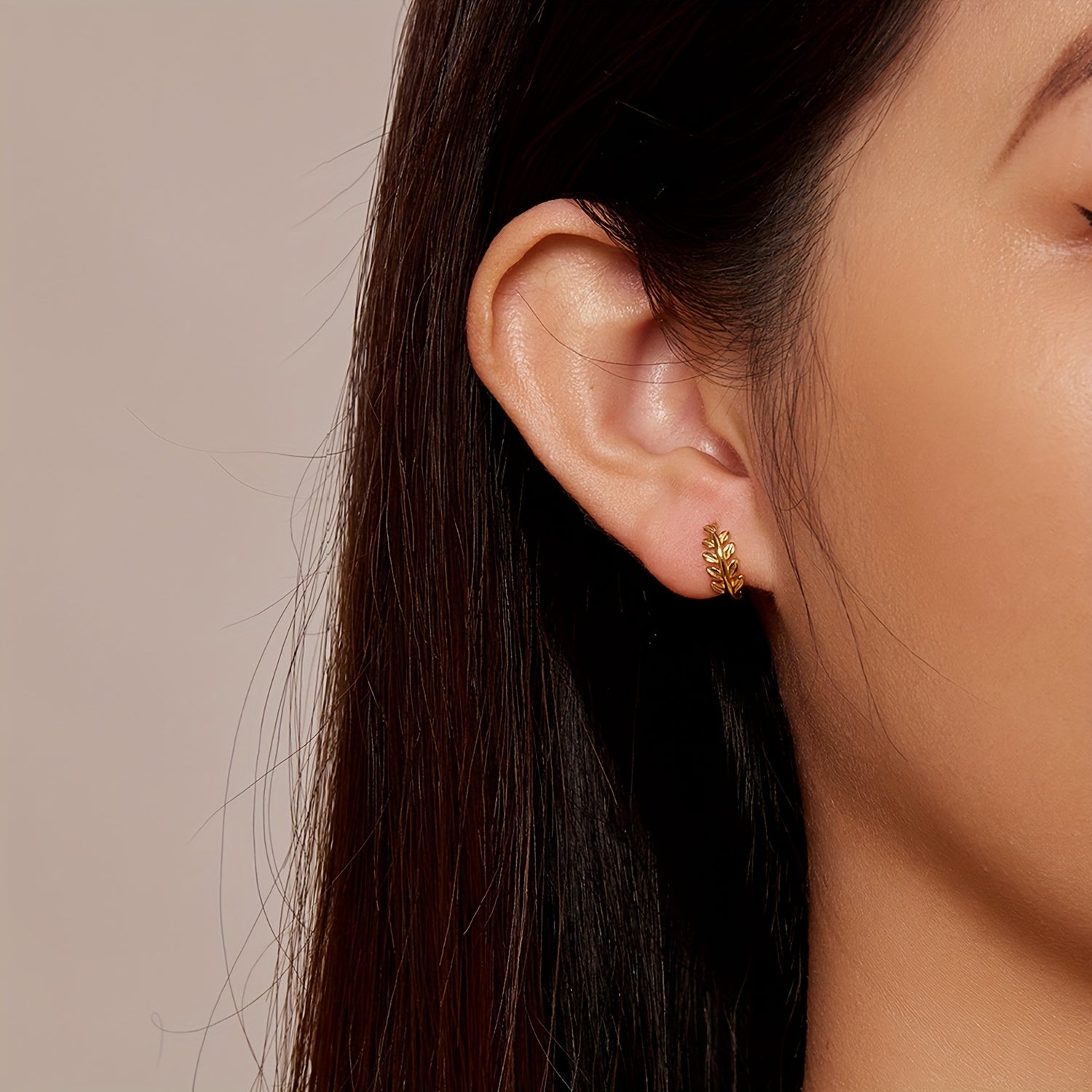 Beautiful pair of sterling silver hoop earrings with golden and silvery twigs design. Perfect as a gift for women.