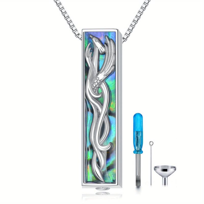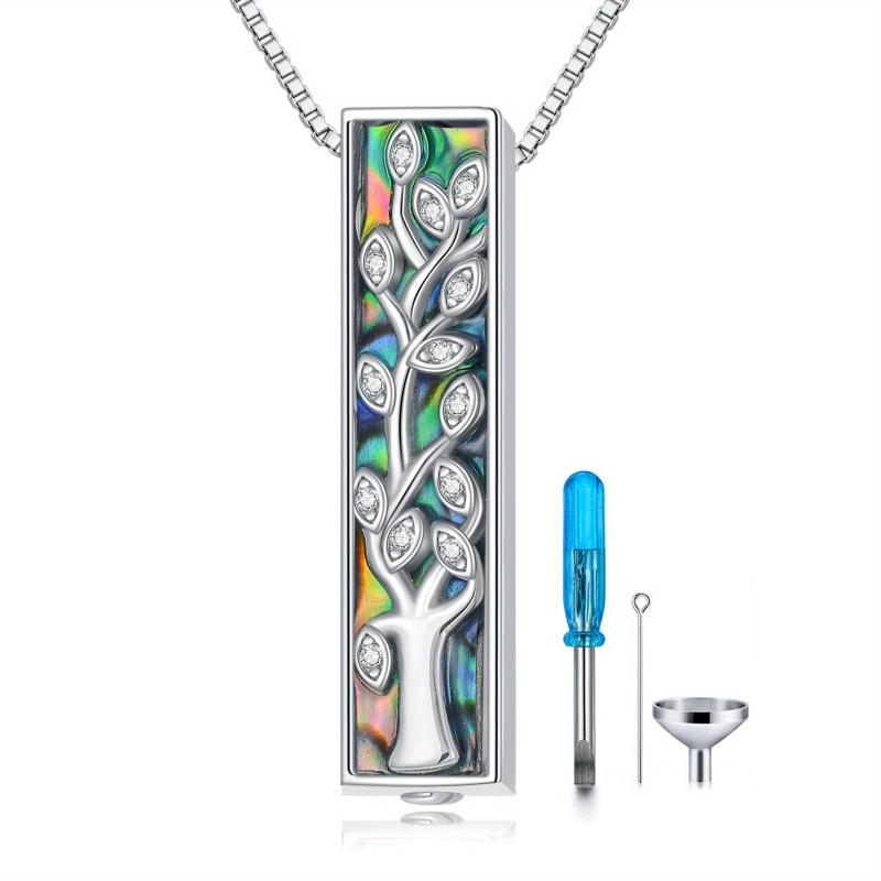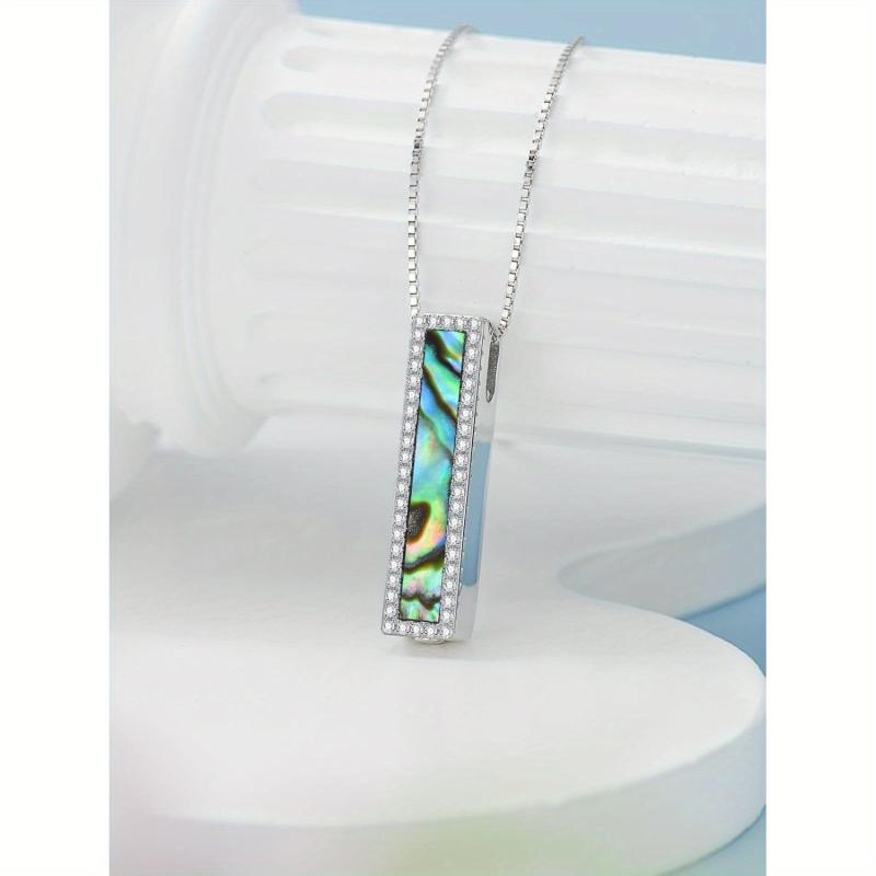 Keep your loved one close with this stylish sterling silver urn necklace featuring abalone shell bar design. This memorial cremation jewelry is a beautiful way to honor and remember someone special.