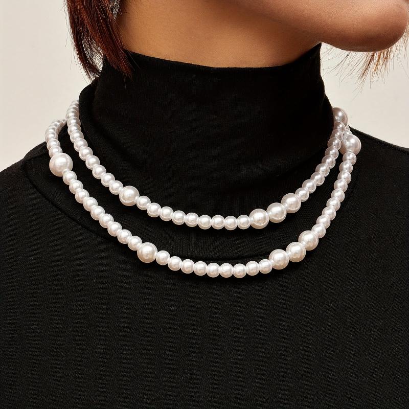 This acrylic faux pearl necklace is perfect for daily wear and parties, adding a touch of elegance to any outfit. It is a versatile piece that can be worn on the clavicle, making it a great gift for your girlfriend.