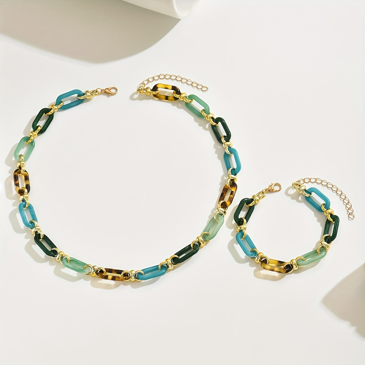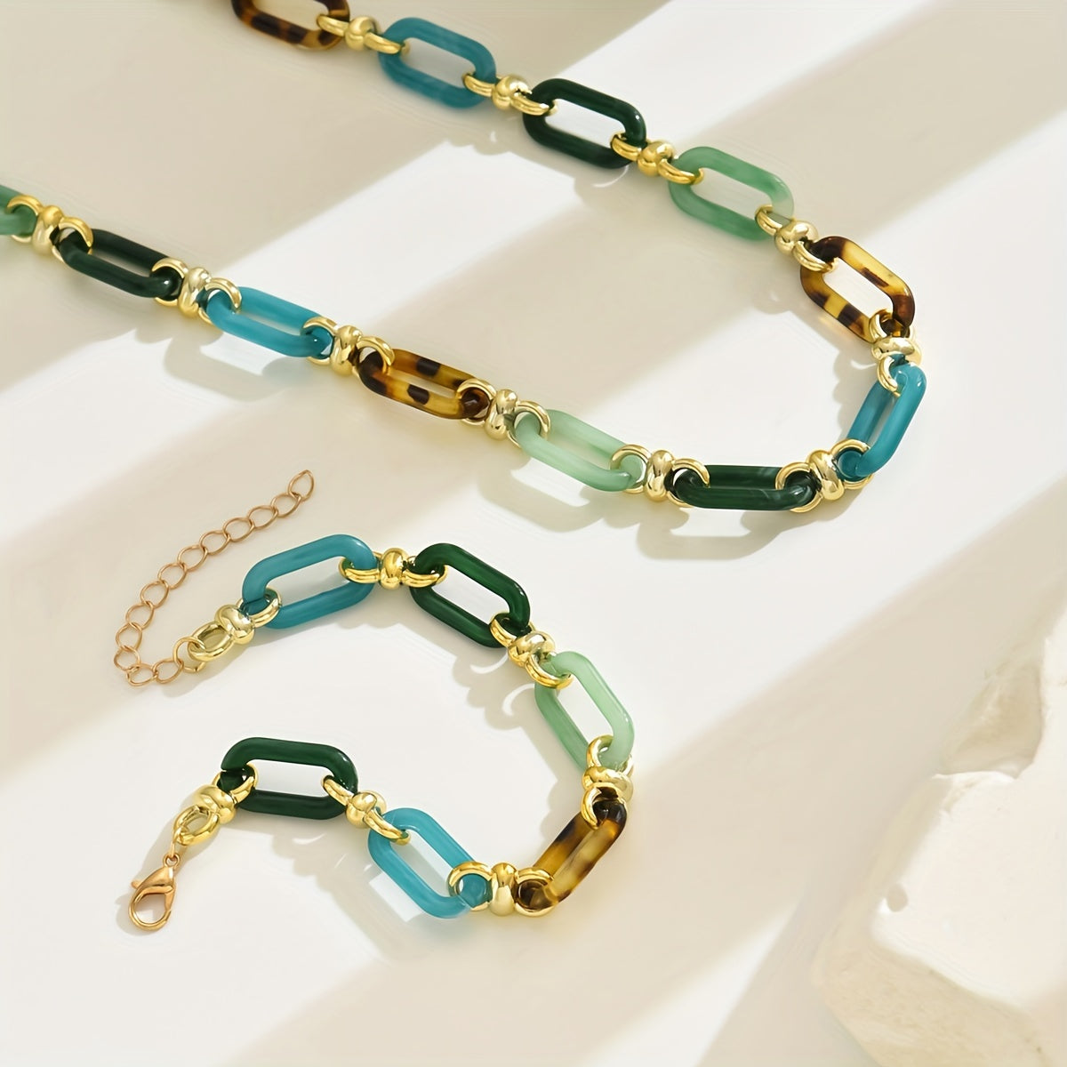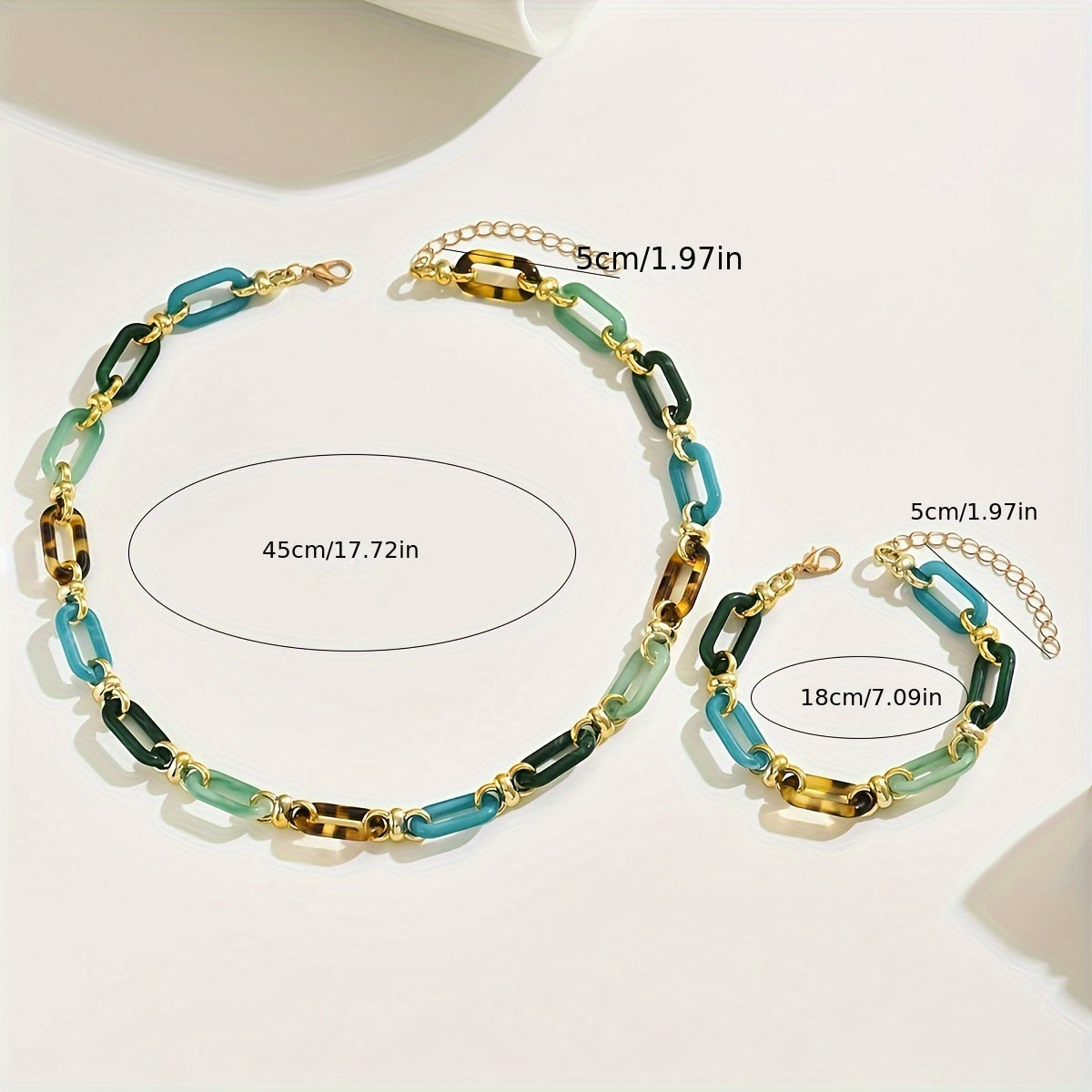 Stylish 2-piece chain link jewelry set made of acrylic gradient material. Perfect for daily wear or as a gift. Ideal for Valentine's Day and all occasions.
