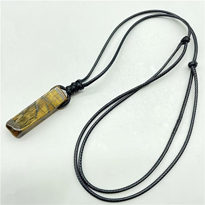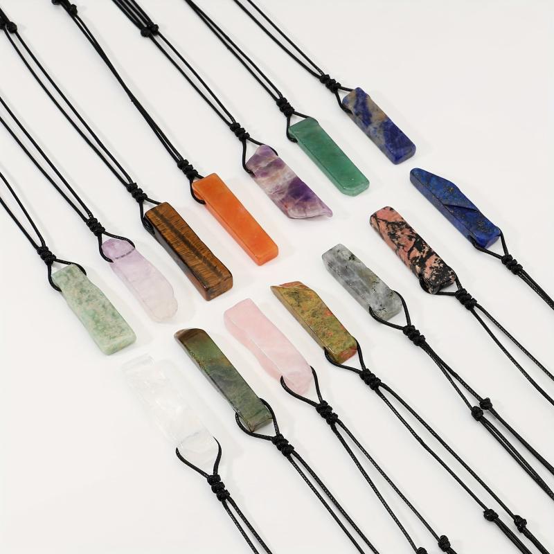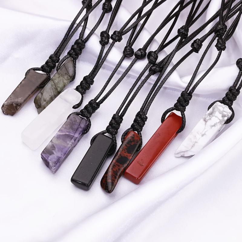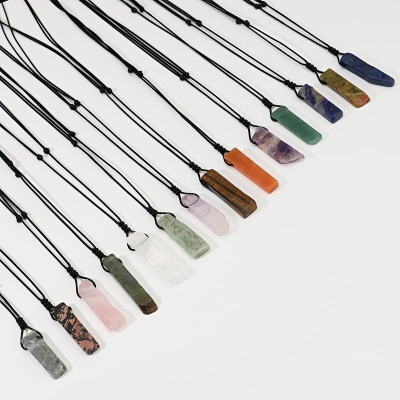Adjustable Bohemian Rope Necklace with Natural Stone Pendant