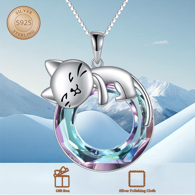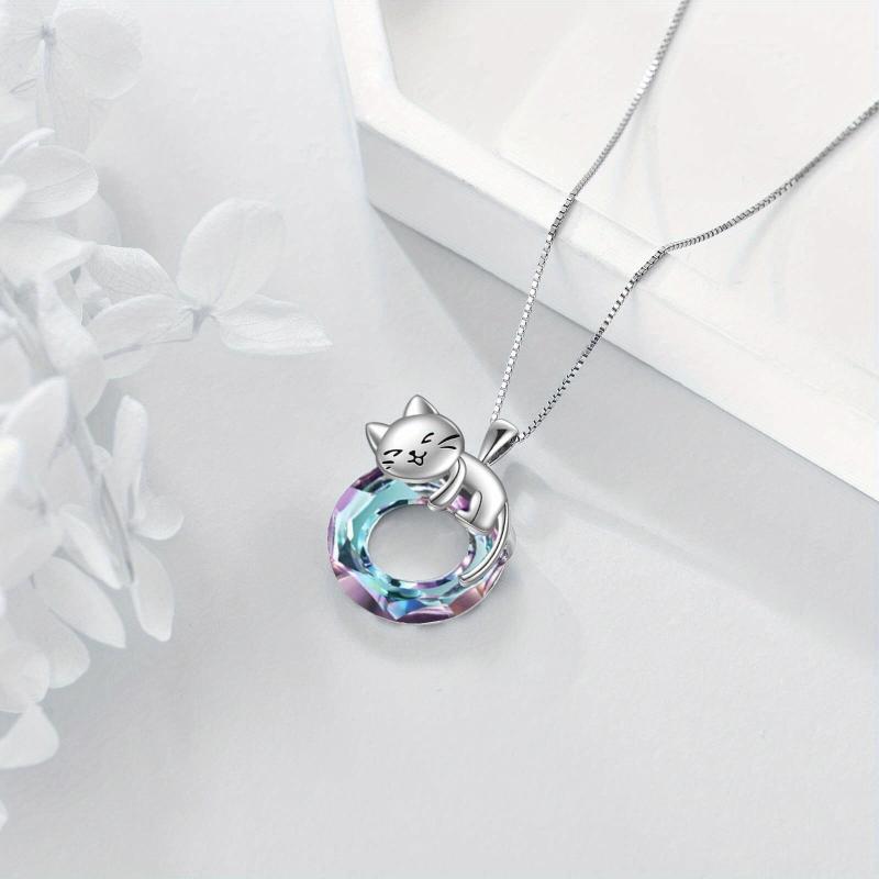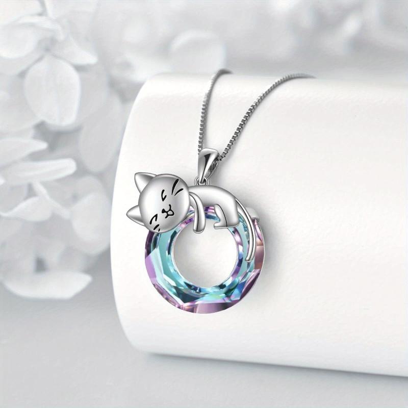 Adorn yourself with this elegant cat necklace featuring a synthetic purple crystal cat pendant crafted from 925 sterling silver.
