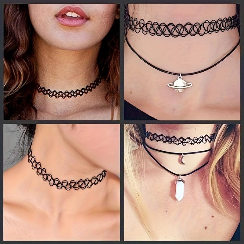 This set includes 2 versatile fish line tattoo choker necklaces suitable for daily wear or dance parties. A perfect accessory gift for women.