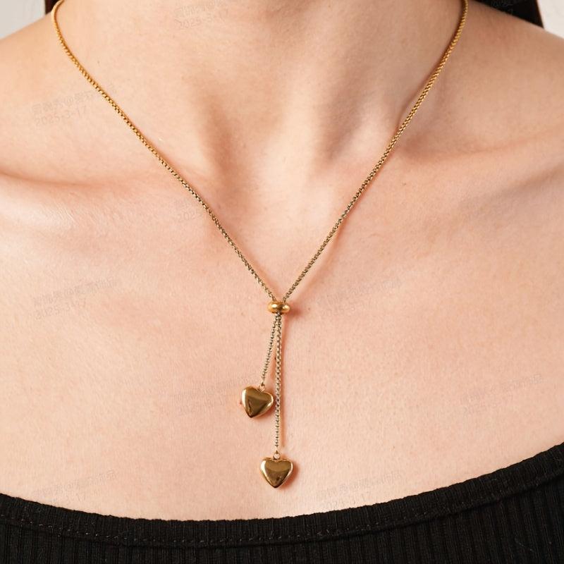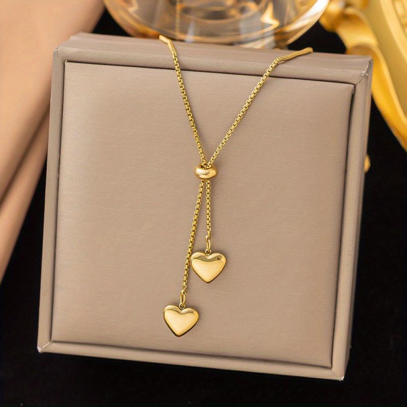 Adjustable Layered Necklace with Heart Pendant Stainless Steel Jewelry