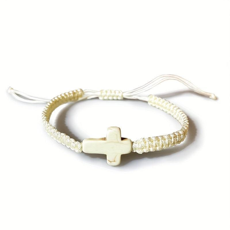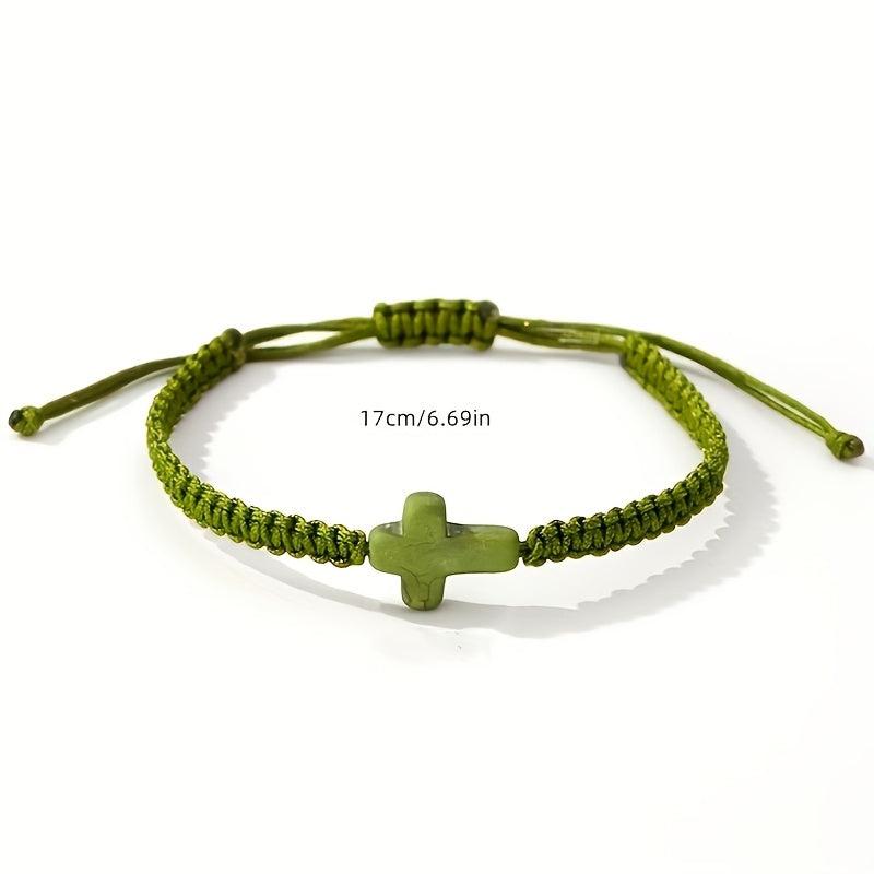 This stylish bracelet features a turquoise cross design handwoven with durable polyester fiber. Perfect for adding a pop of color to your casual attire or beach outings.