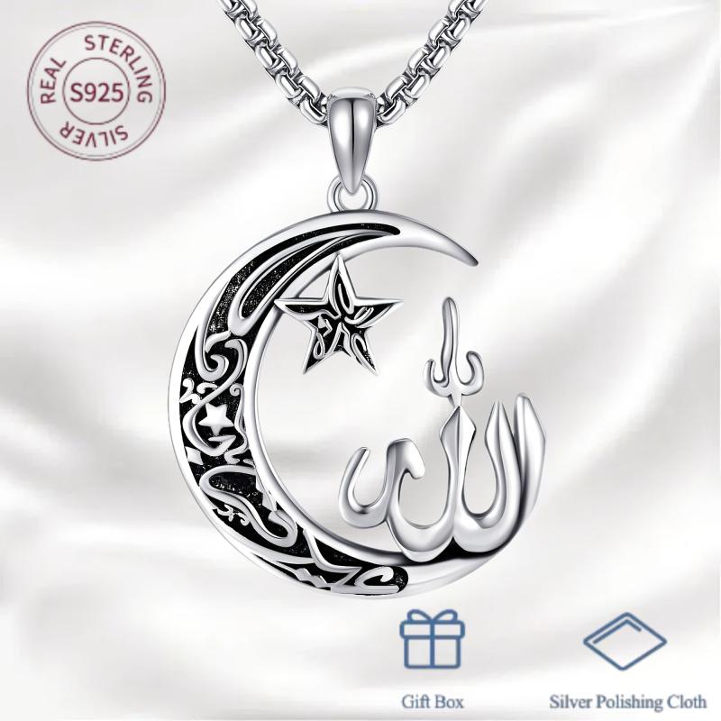 Beautiful Allah pendant necklace crafted from 925 sterling silver, perfect for Muslim men and women. Makes a thoughtful gift for Mother's Day or any occasion.