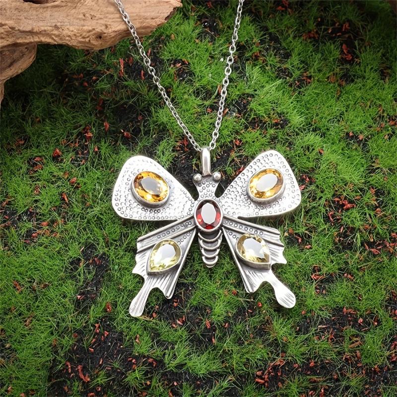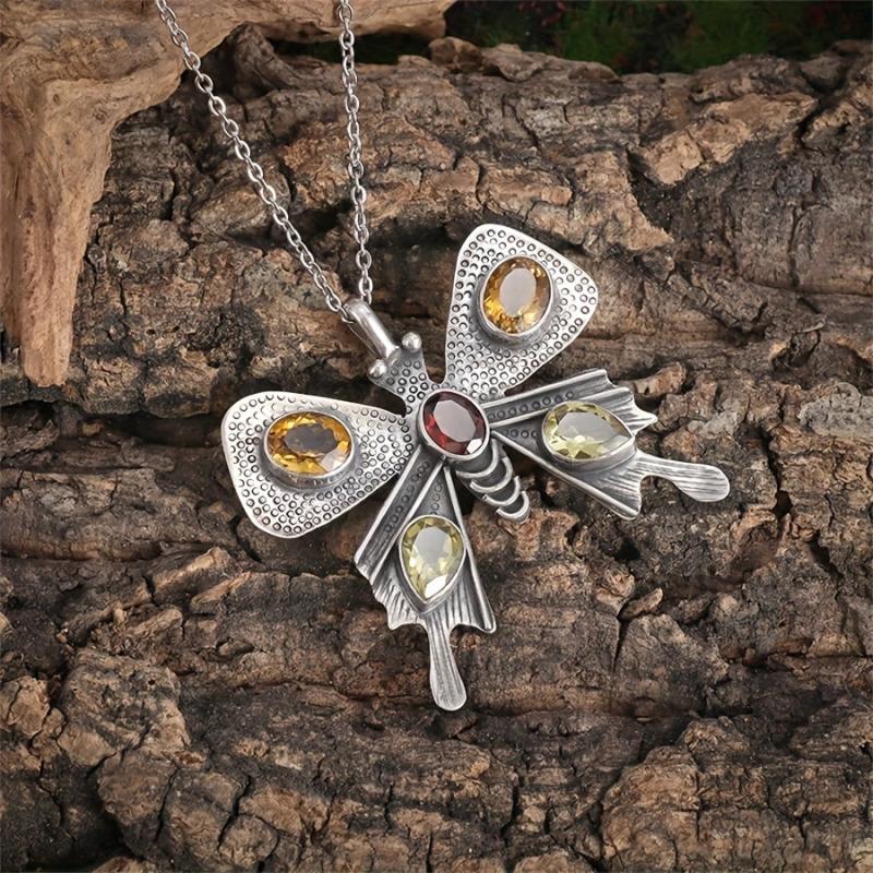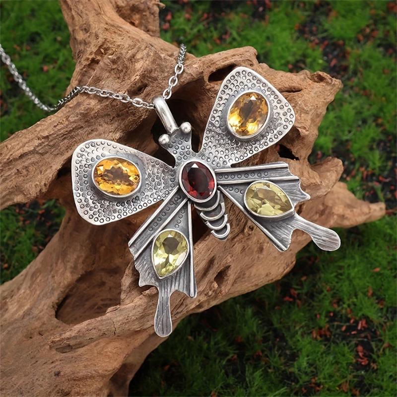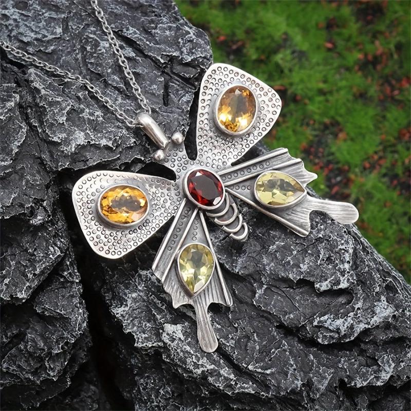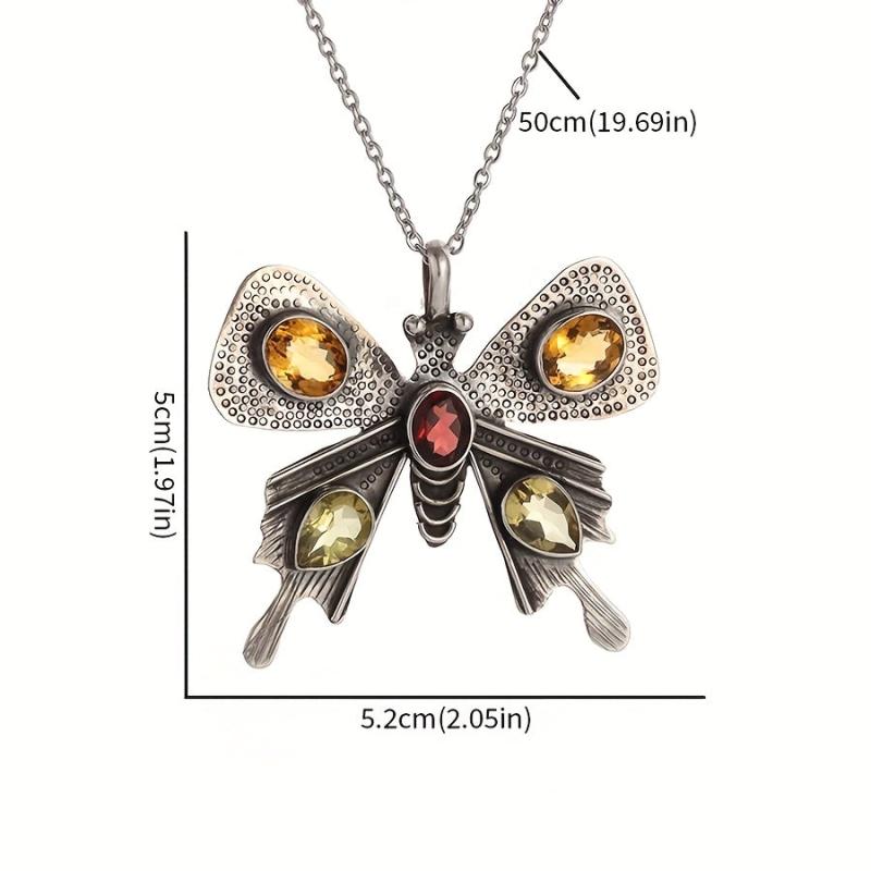 This pendant necklace features an intricate wing design with multicolor synthetic zirconia stones and golden plating. It is suitable for daily wear and parties, perfect for both women and men.
