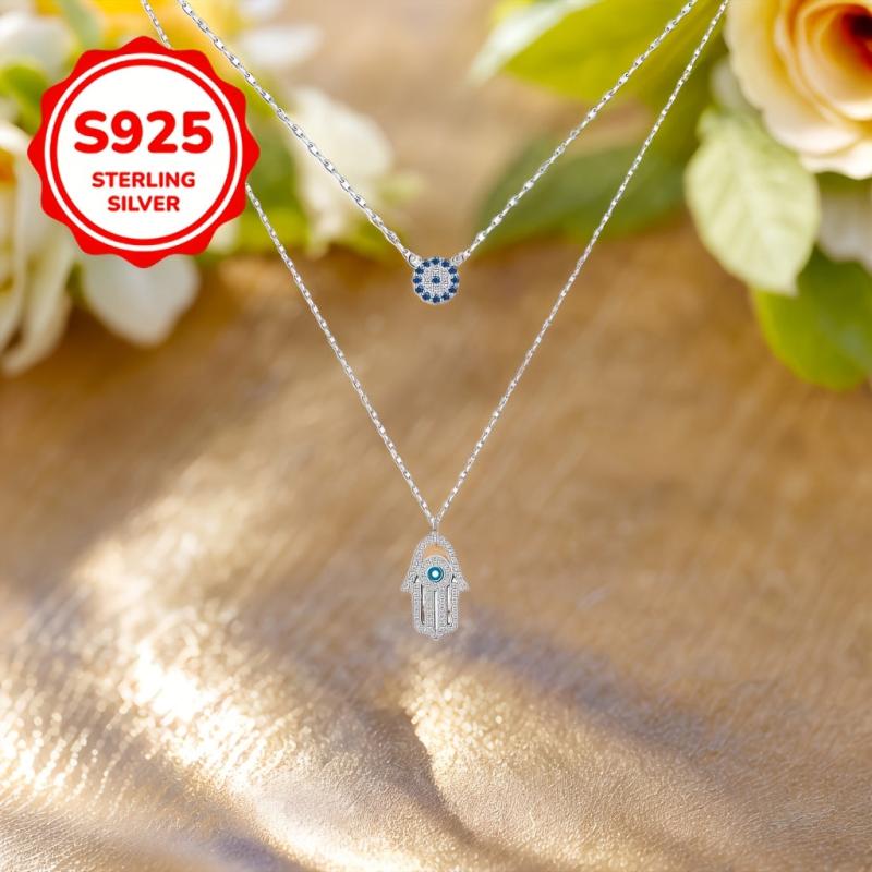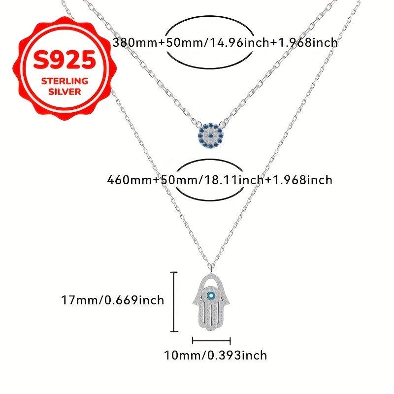 Add a touch of bohemian chic with this blingbling double-layer necklace featuring a devil eye pendant. Made of S925 silver with synthetic cubic zirconia, this court-style chain is perfect for a stylish look.
