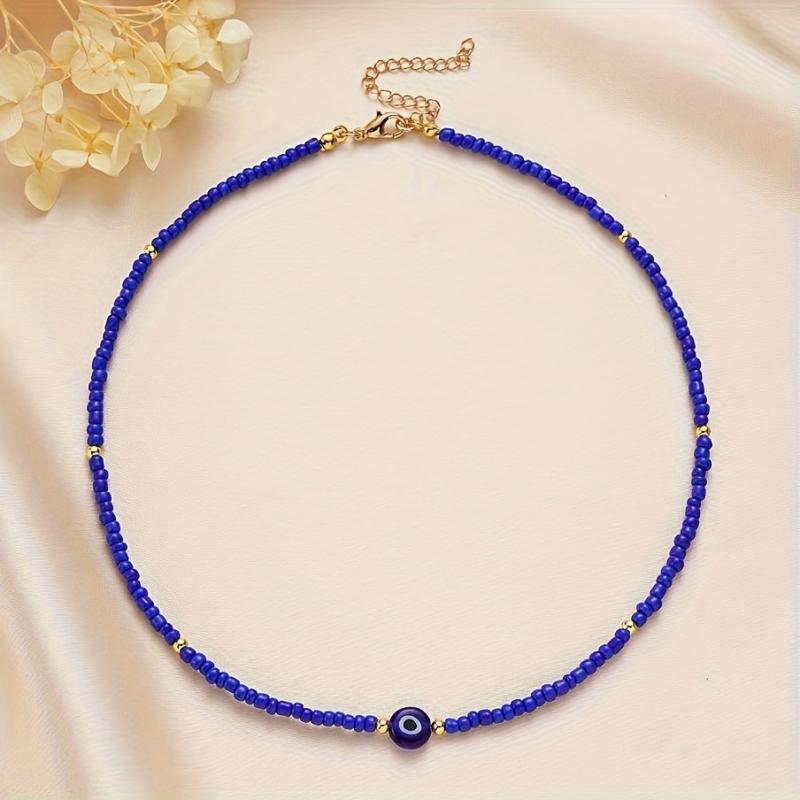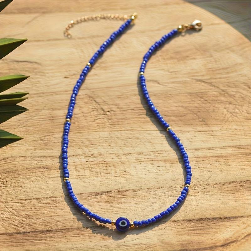 • Bohemian evil eye beaded necklace for women