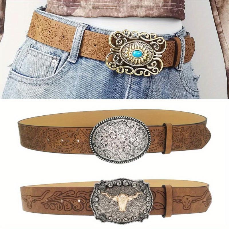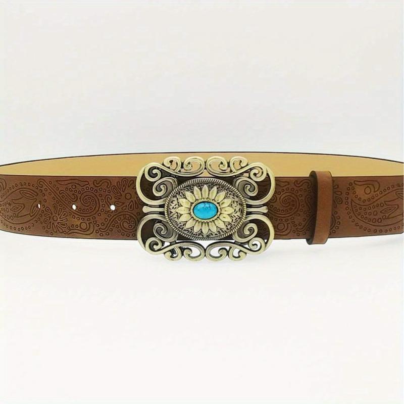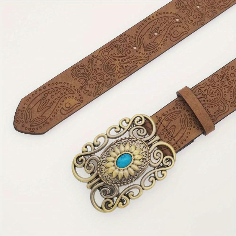 Get a touch of vintage western cowboy style with this Bohemian floral print belt. The adjustable leather waistband features a metal buckle for a hip hop punk look.