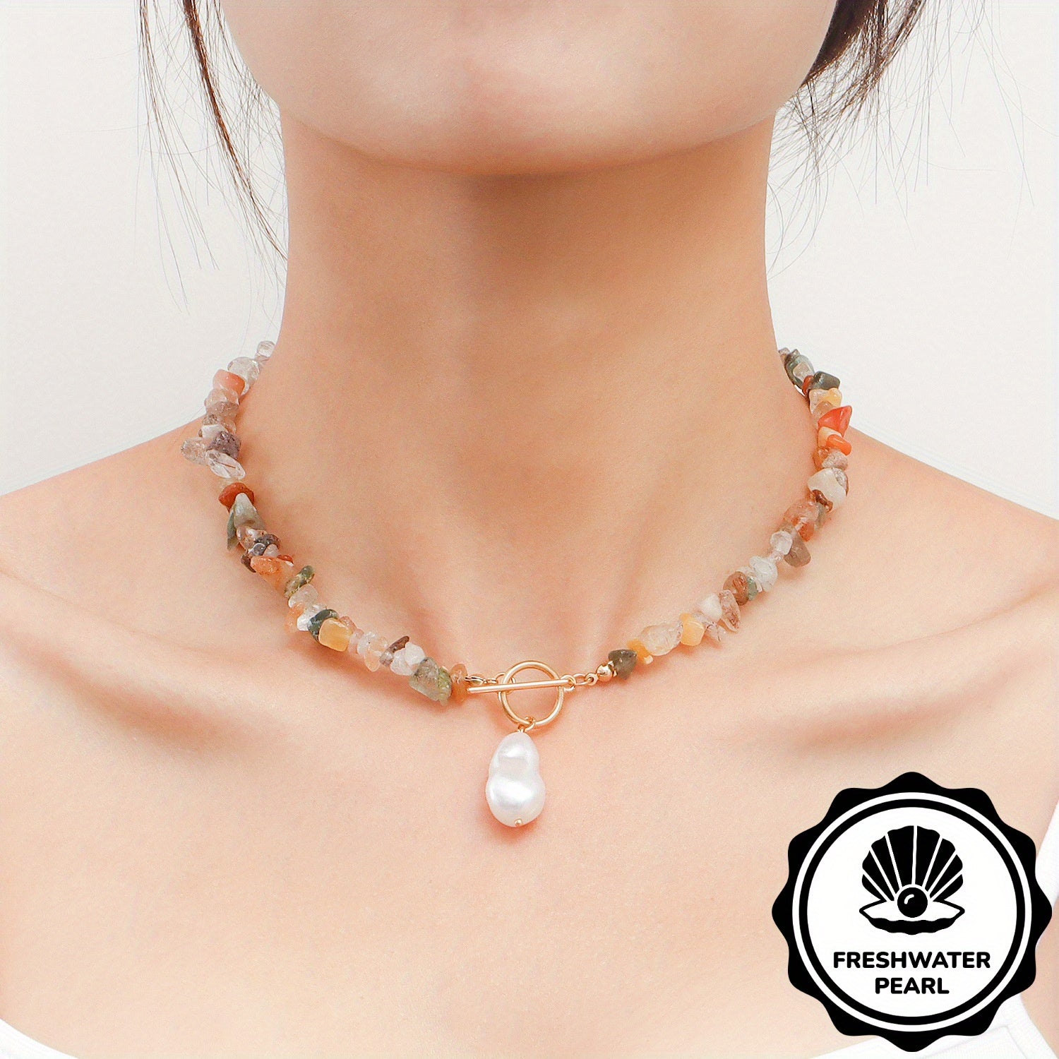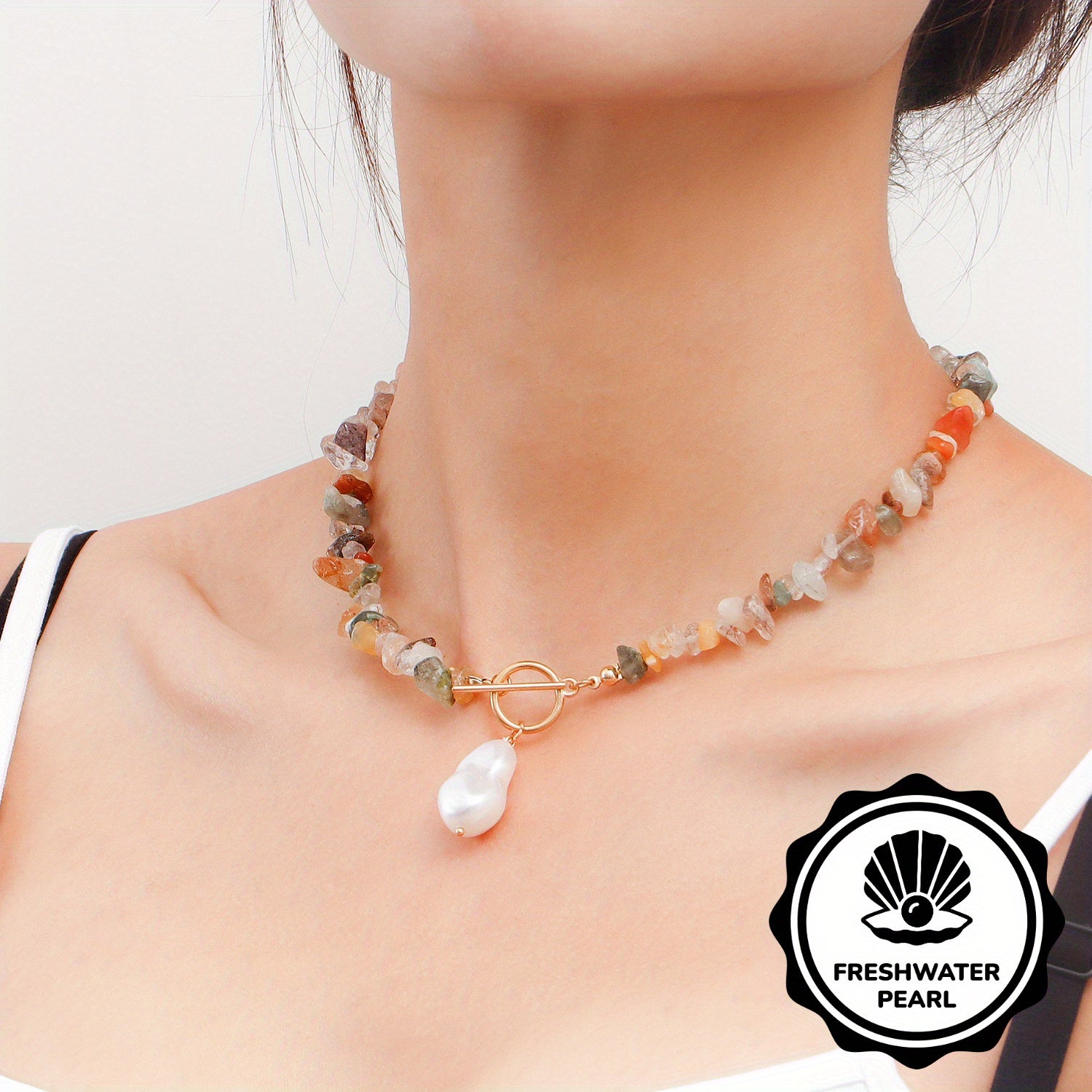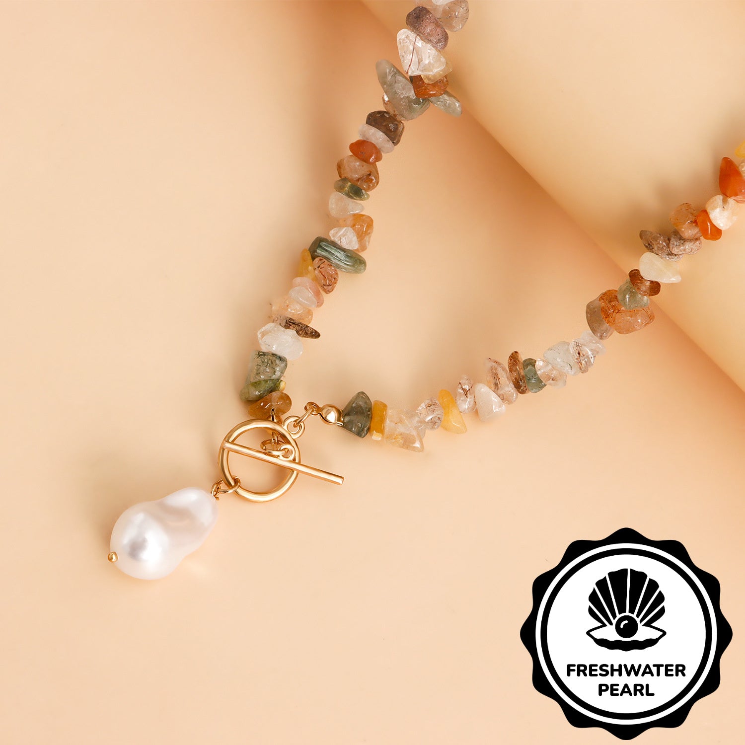 Elevate your style with this stunning bohemian baroque freshwater pearl and multicolor gemstone necklace. Perfect for weddings, vacations, and year-round wear.