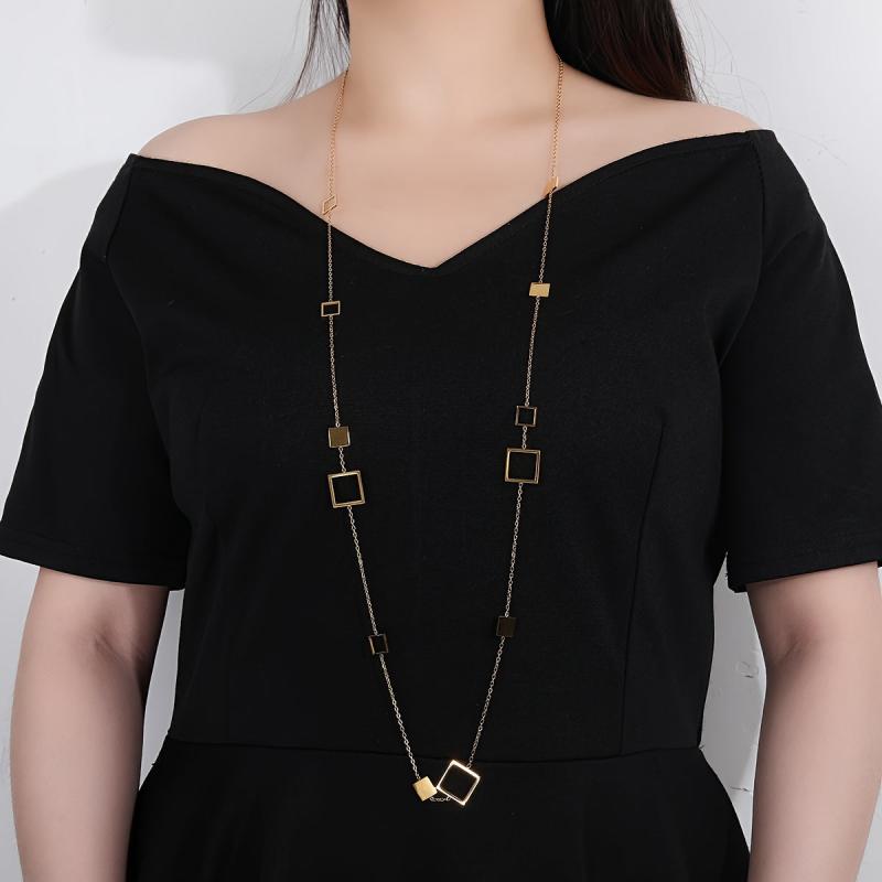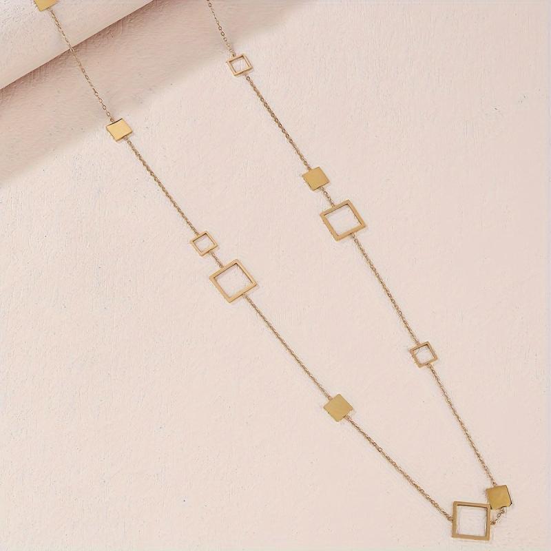 Add a touch of bohemian flair to your outfit with this stylish necklace featuring a square pendant and layered chain design. Perfect for casual attire, parties, weddings, and holidays. Makes a great gift for birthdays and special occasions.