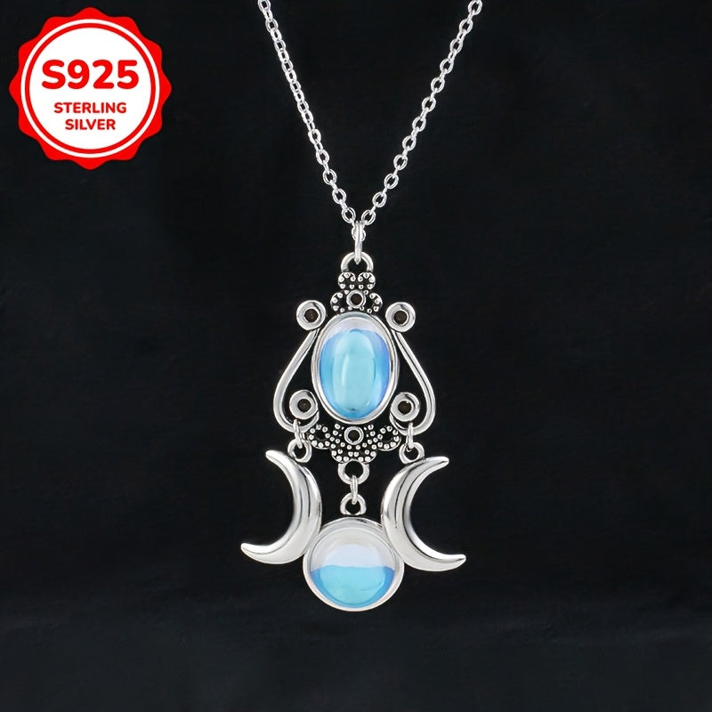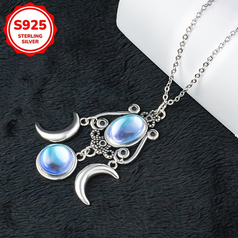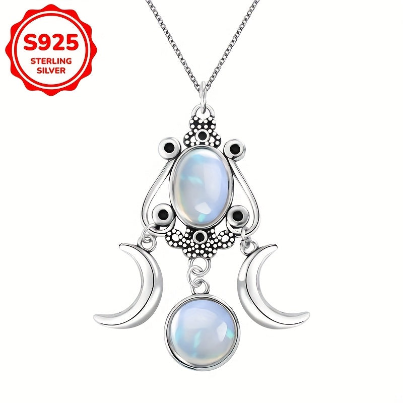 Elevate your style with this anti-allergic bohemian moonstone pendant necklace. Perfect for daily wear or vacation, this 925 silver piece is a stunning addition to any outfit.