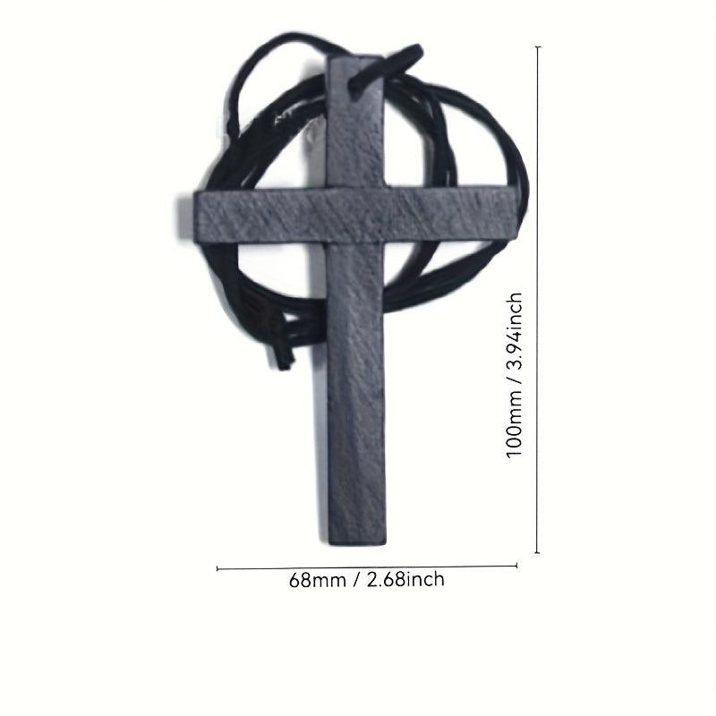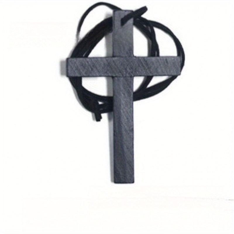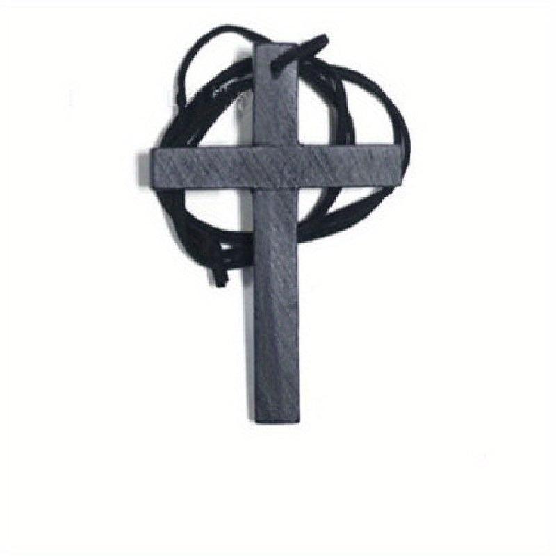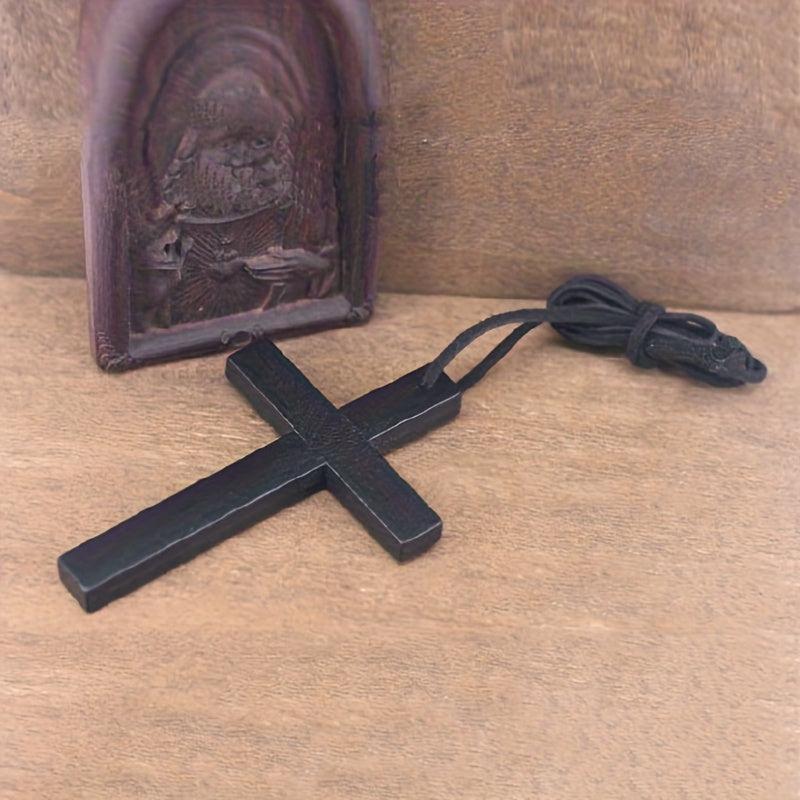 Vintage Bohemian recycled wood cross pendant necklace with cord. This handcrafted religious jewelry is a high everyday spiritual accessory for women.
