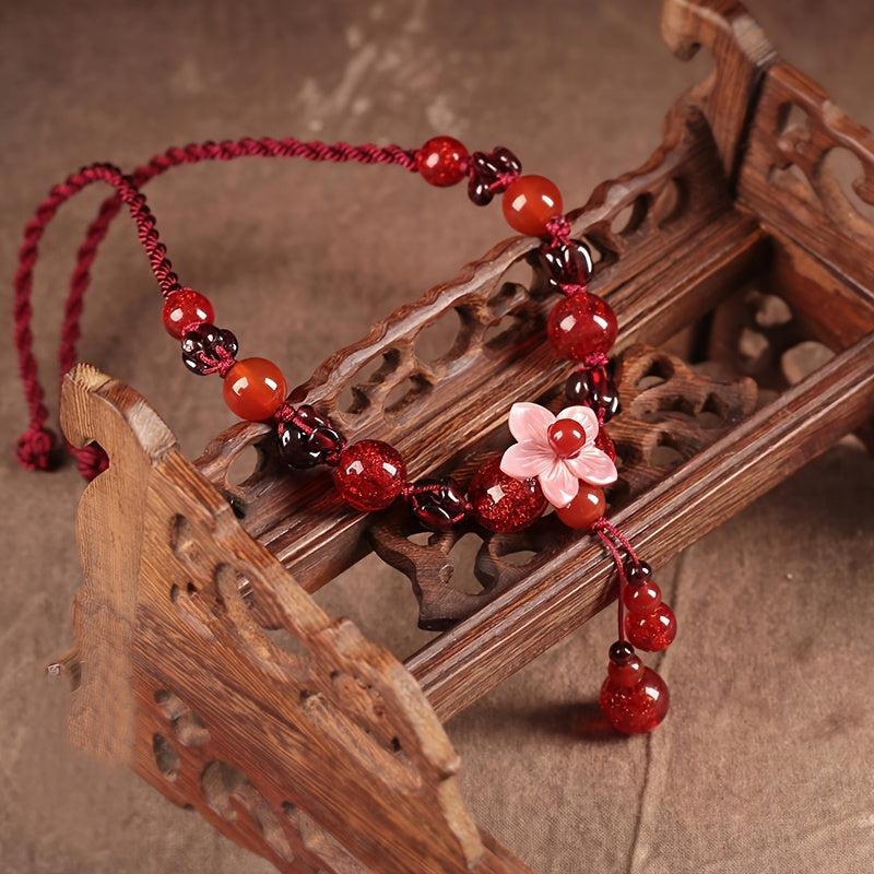 This lightweight and durable necklace features a red flower pendant made of glass beads. Perfect for adding a touch of bohemian style to any outfit.