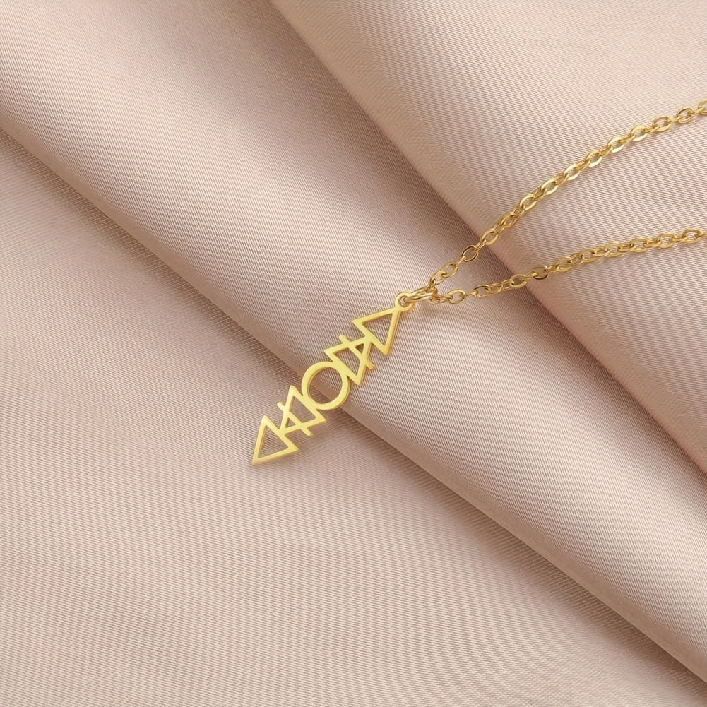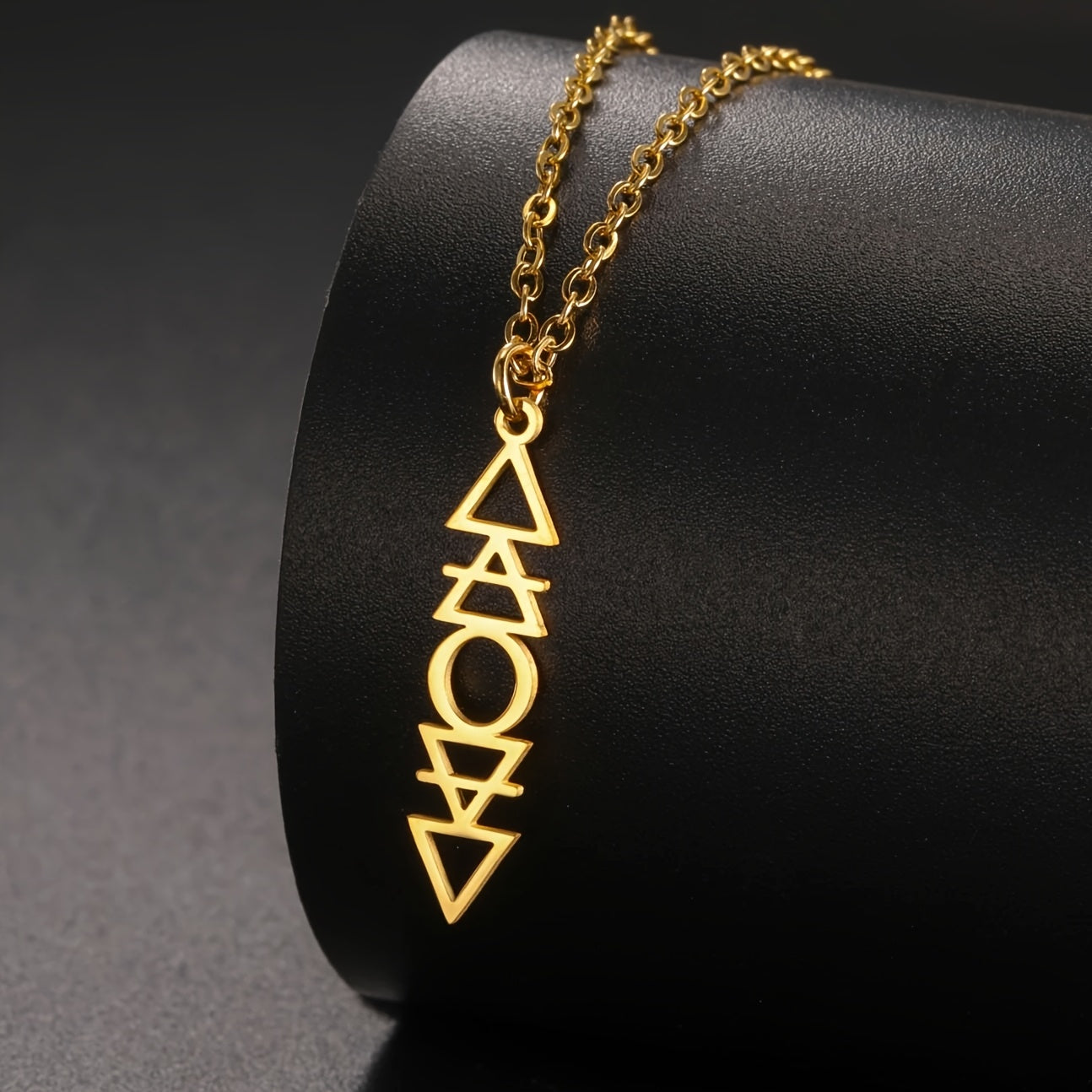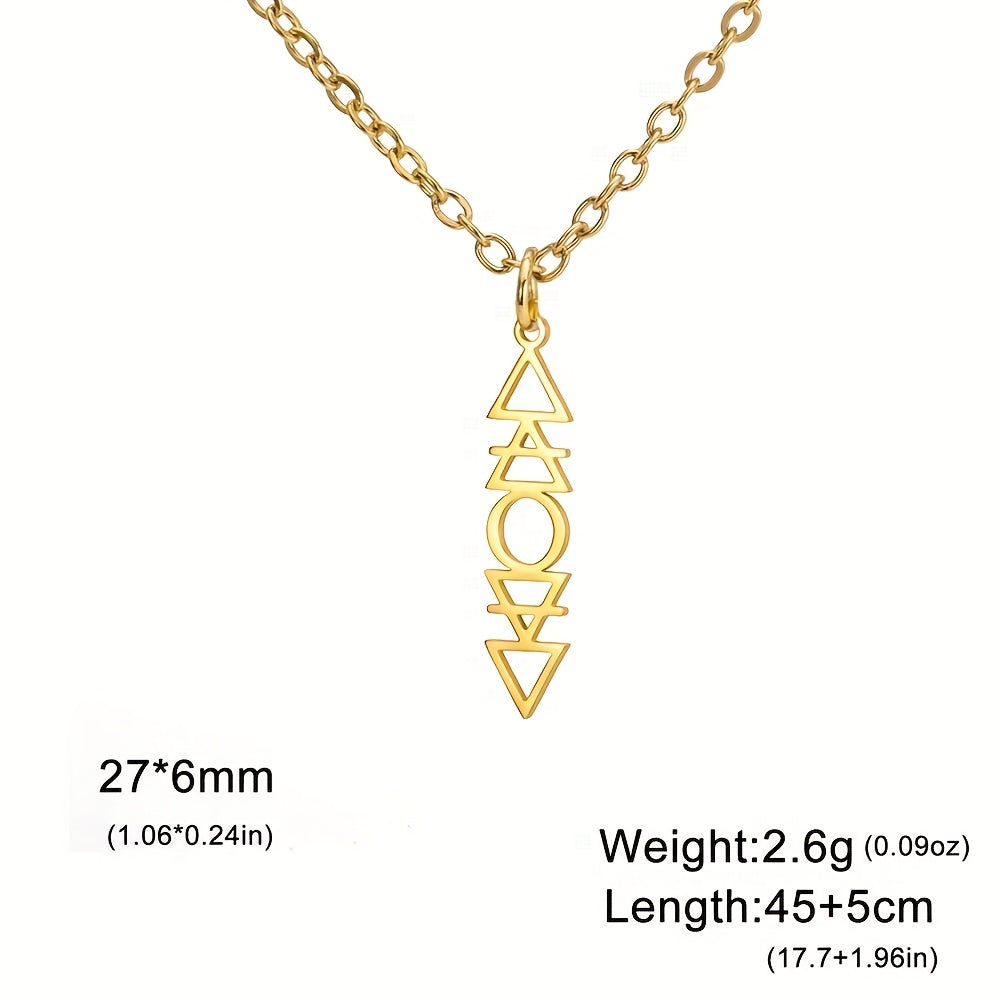 Add a touch of bohemian style with this stunning stainless steel necklace featuring the four elements design in a golden tone. Perfect accessory for women.