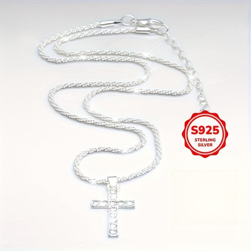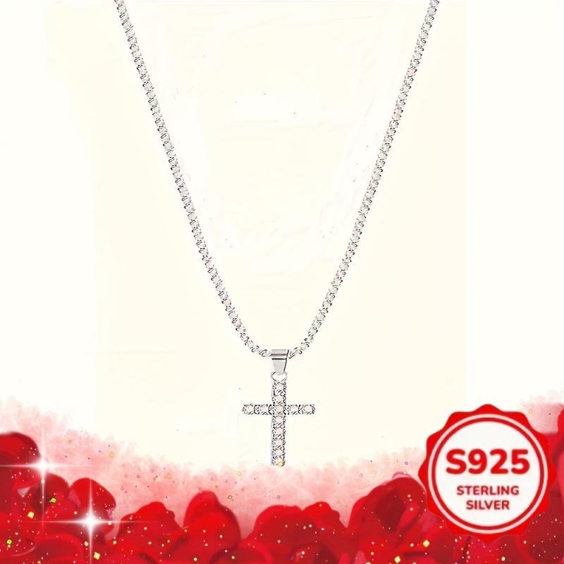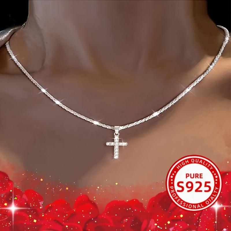 This elegant necklace features a cross pendant with cubic zirconia setting, a perfect gift for mothers. Suitable for casual wear.