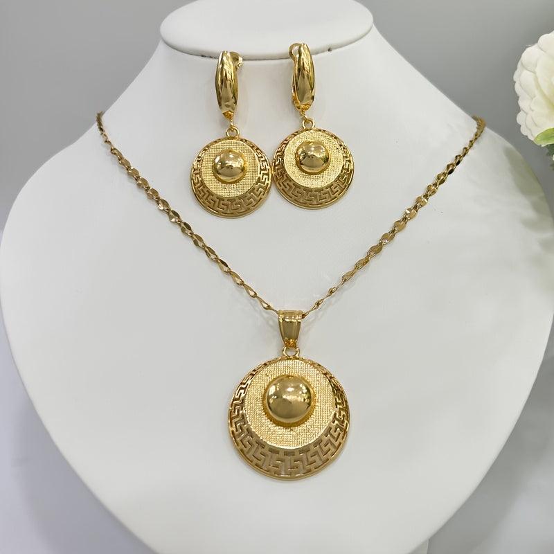 Complete your wedding or party look with this stunning bohemian style alloy earrings and pendant necklace set. Ideal for adding a touch of elegance and charm to your outfit.