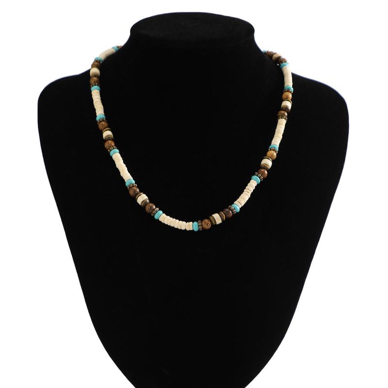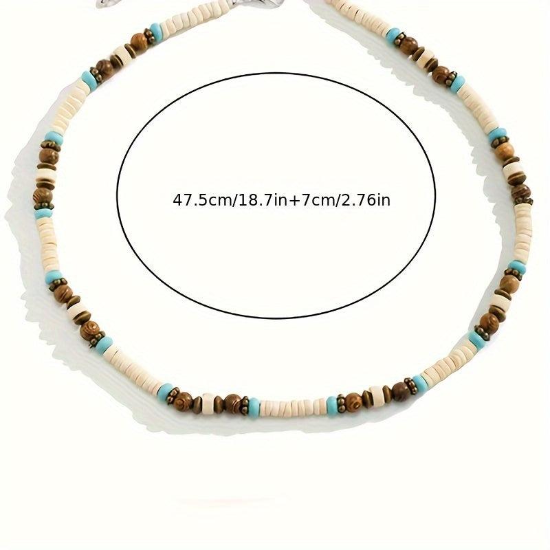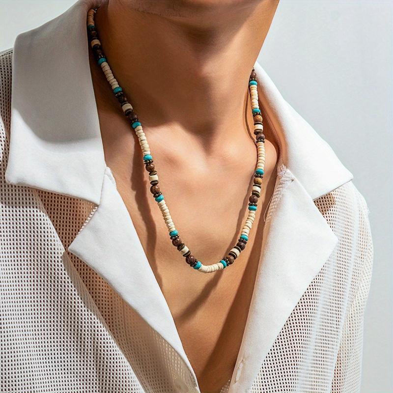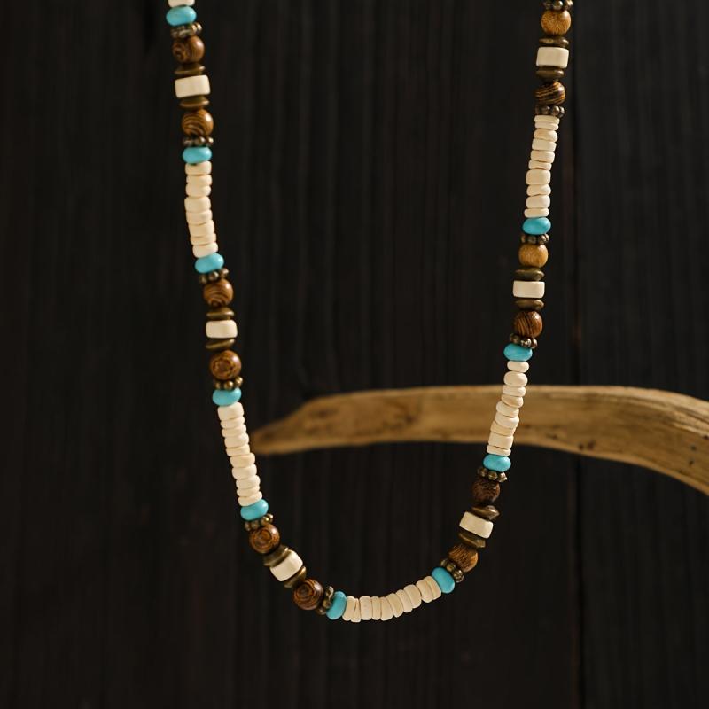This necklace features a beautiful combination of turquoise wood and coconut shell beads, creating an earthy brown and green color palette. Perfect for everyday wear or vacation styling, this piece is versatile and adds a touch of ethnic charm to your look.