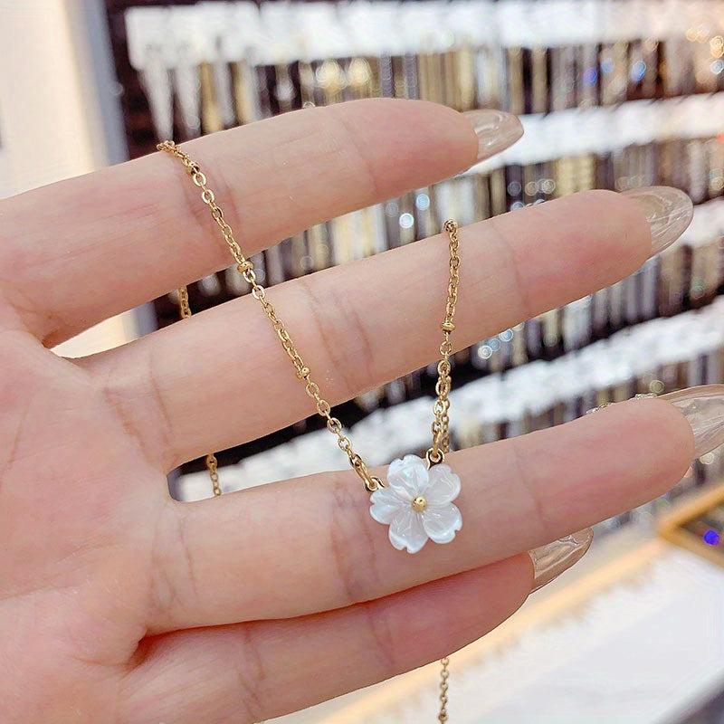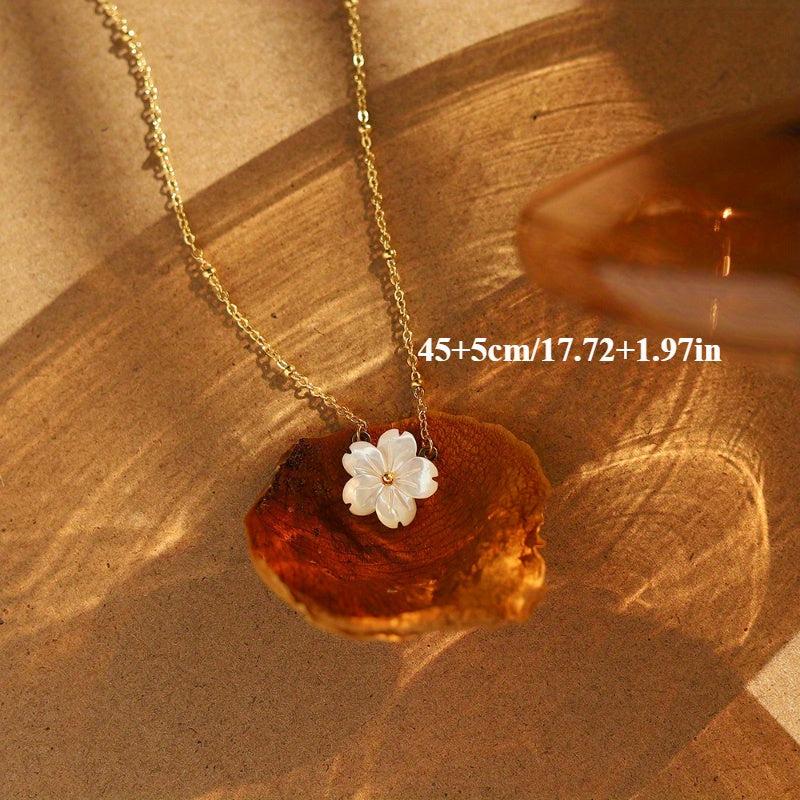 Elevate your style with this stunning boho necklace featuring a flower pendant with shell petal design. Crafted from hypoallergenic 316 stainless steel, this necklace is perfect for parties and banquets.