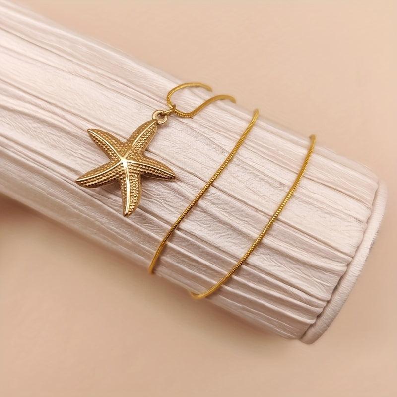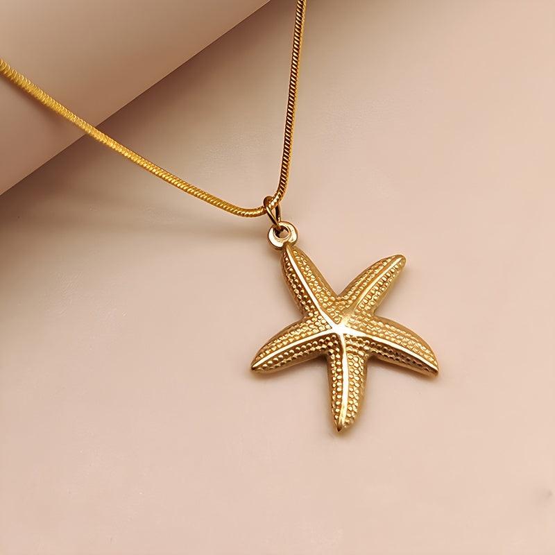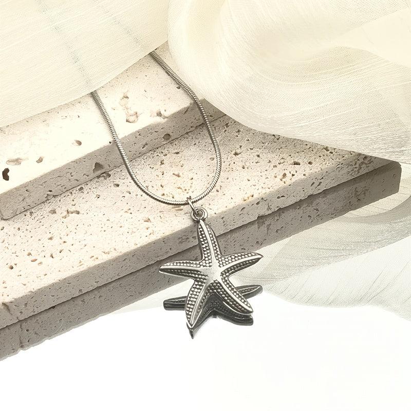 Elevate your summer style with this bohemian starfish pendant necklace. Crafted in stainless steel with intricate detailing, it adds a chic touch to casual and vacation outfits.