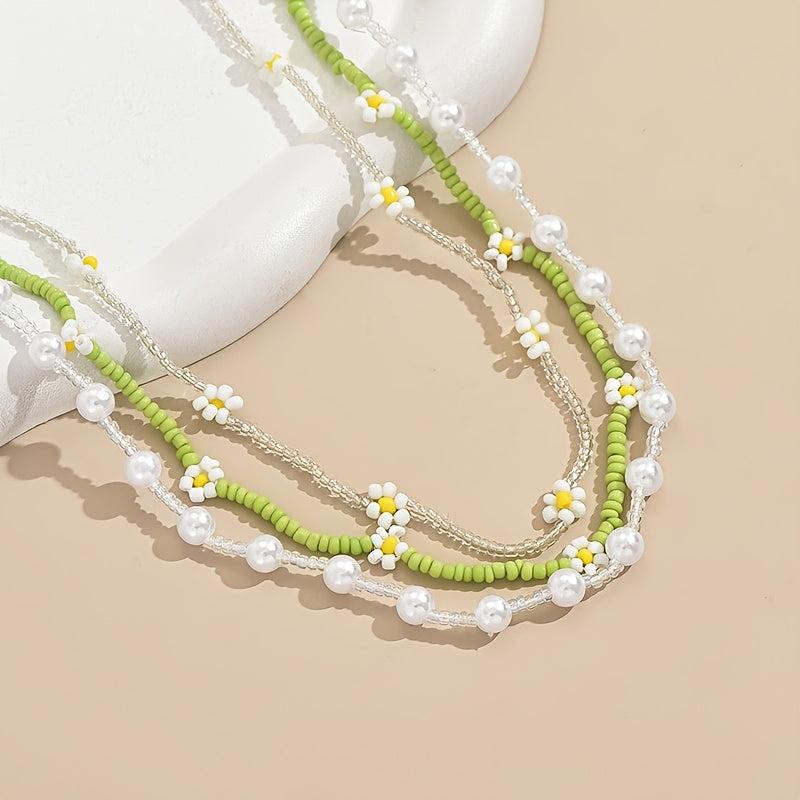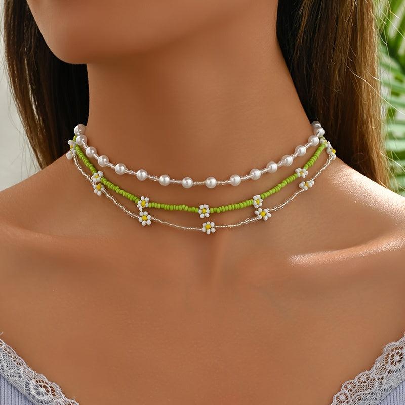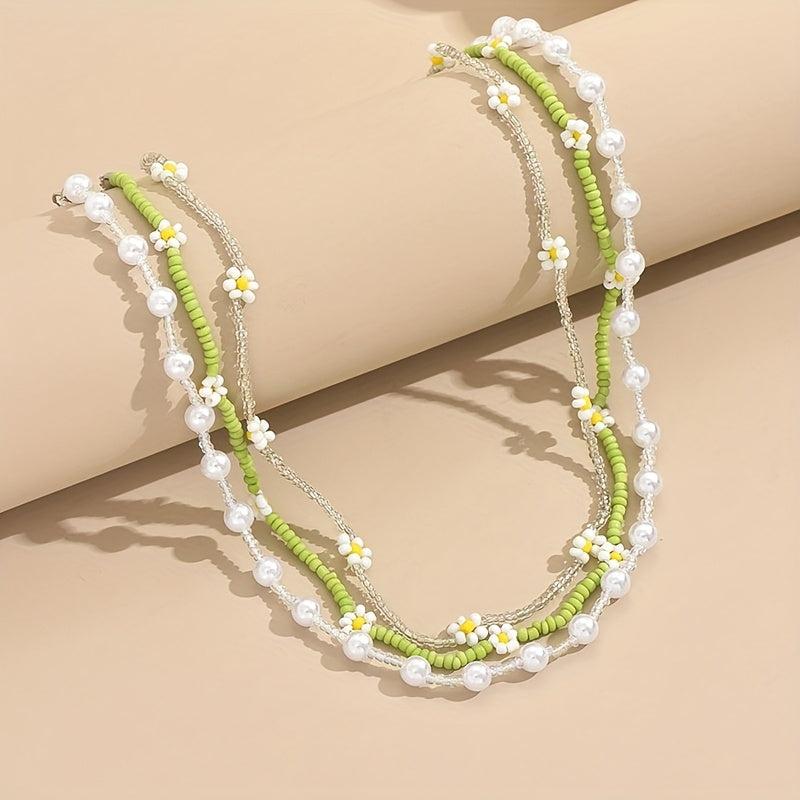 • 3-piece necklace set with boho beaded and faux pearl flower design