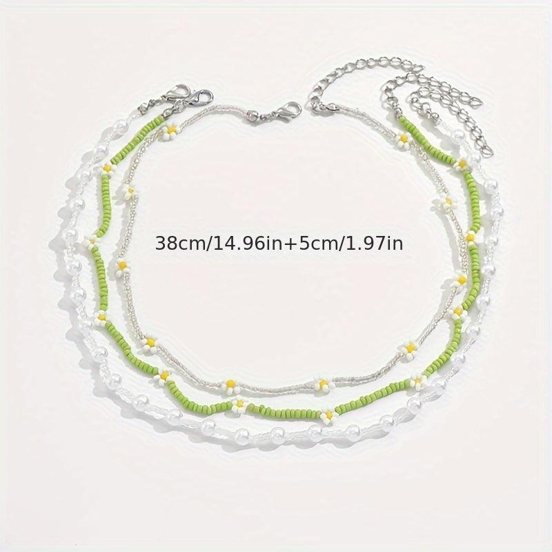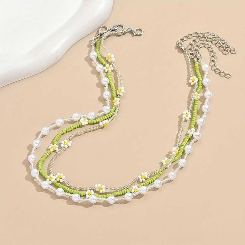 Boho Beaded & Faux Pearl Flower Layered Necklaces for Women