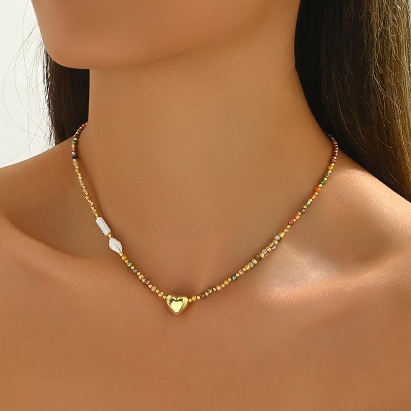 Elevate your style with this boho beaded necklace featuring an artificial crystal heart pendant. Perfect for daily wear or parties, this accessory can be worn all year round.