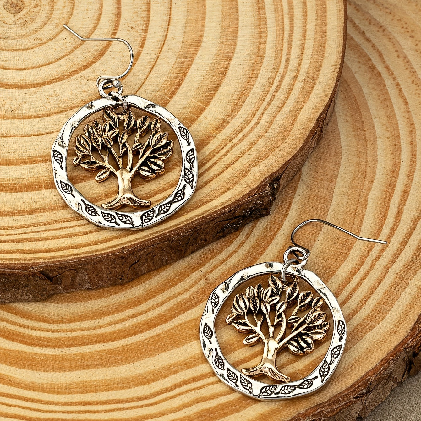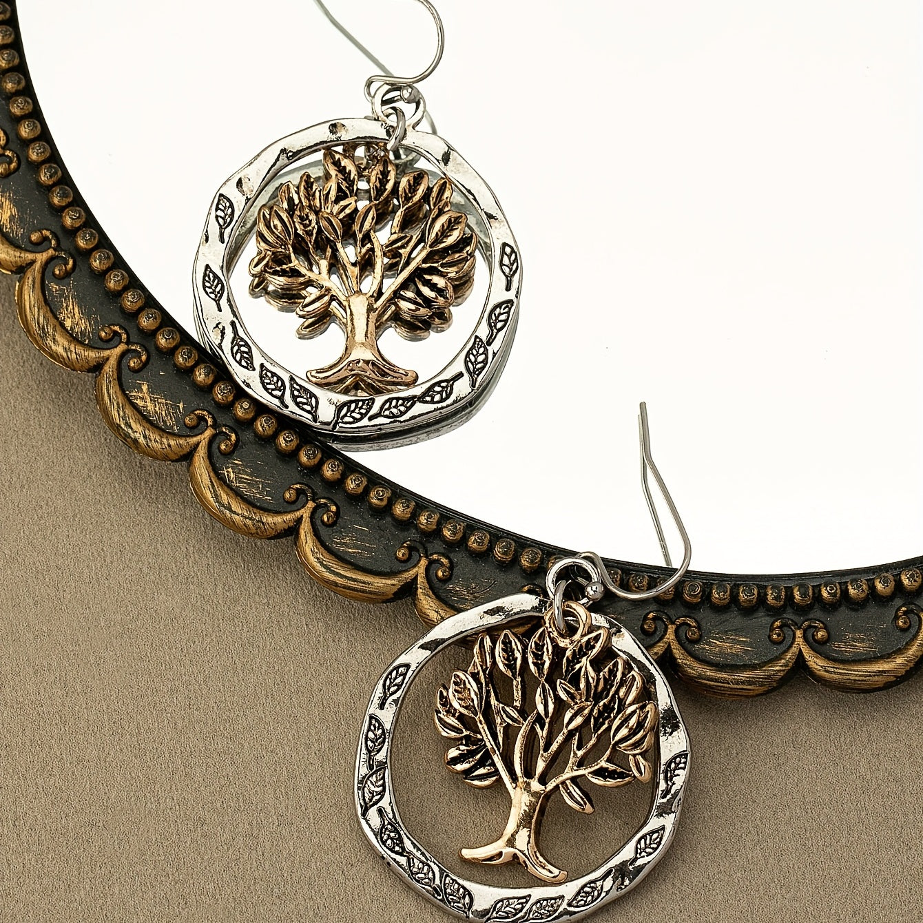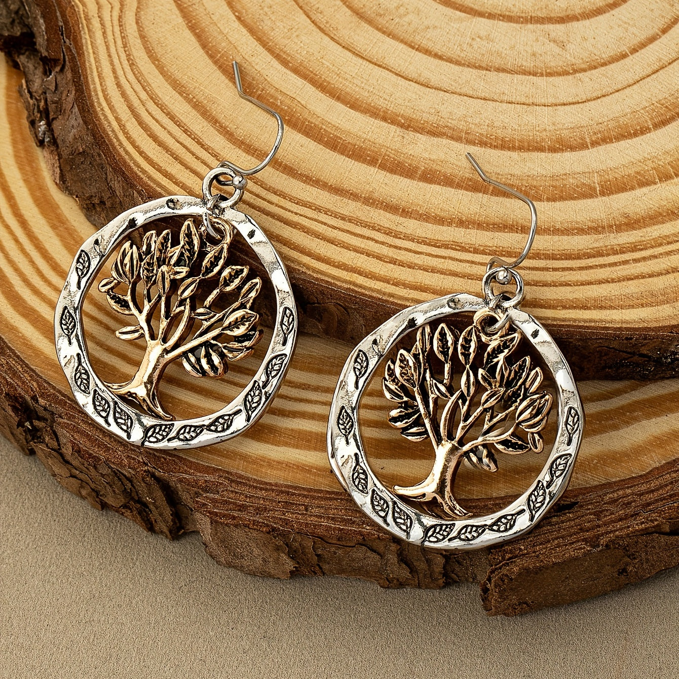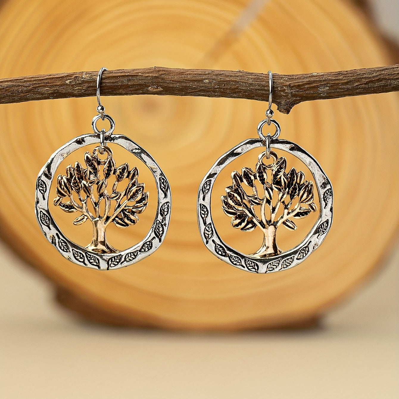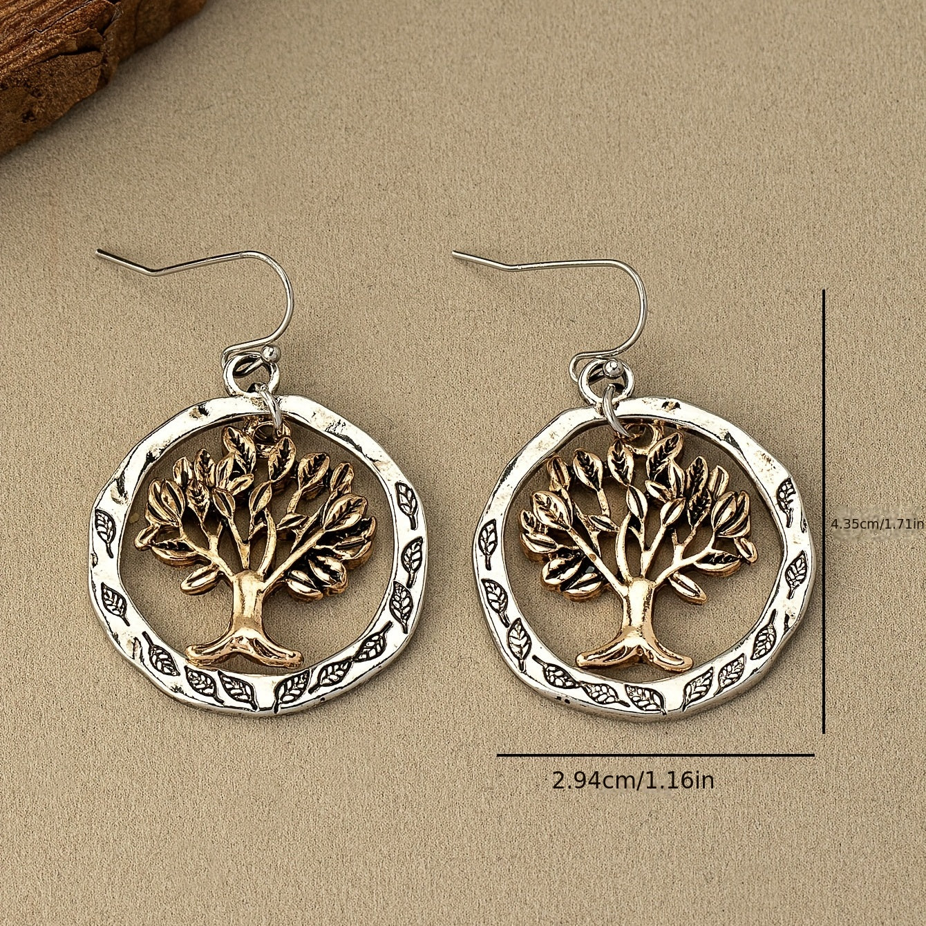 These hollow round dangle earrings feature a Tree Of Life design in a retro boho style. Made of zinc alloy, these earrings are perfect for adding a touch of bohemian flair to any outfit. They also make a great gift for any female jewelry lover.