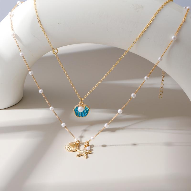 Elevate your beach casual outfit with this bohemian double strand necklace featuring a beautiful pearl pendant.